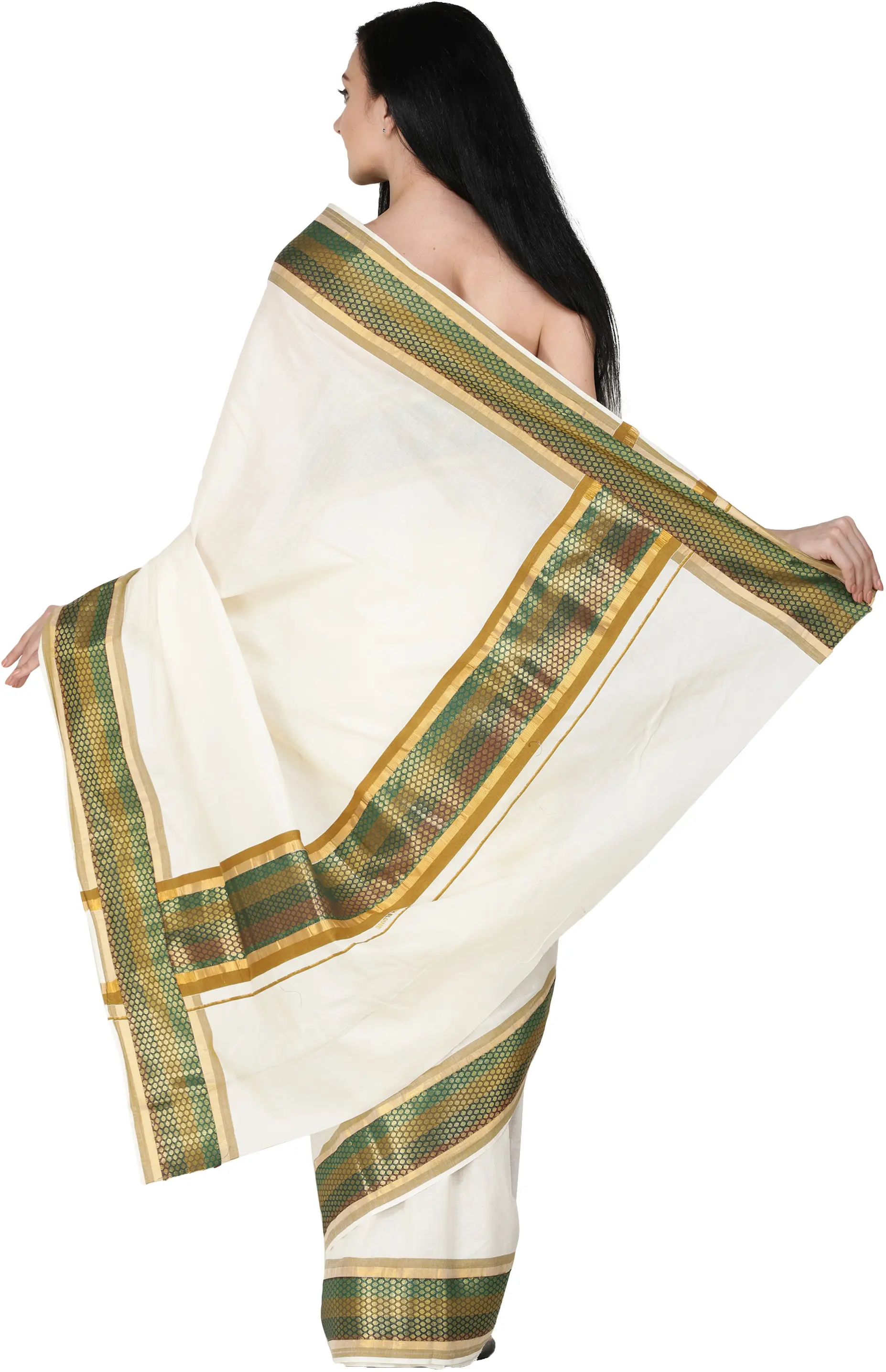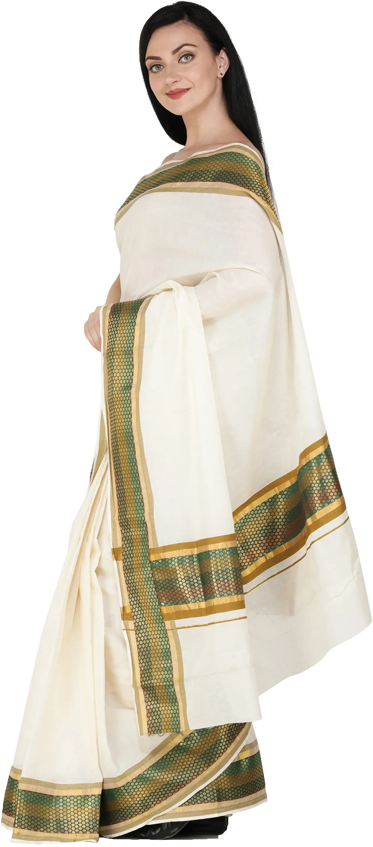 Ivory Kasavu Puja Sari from Kerala with Golden Border