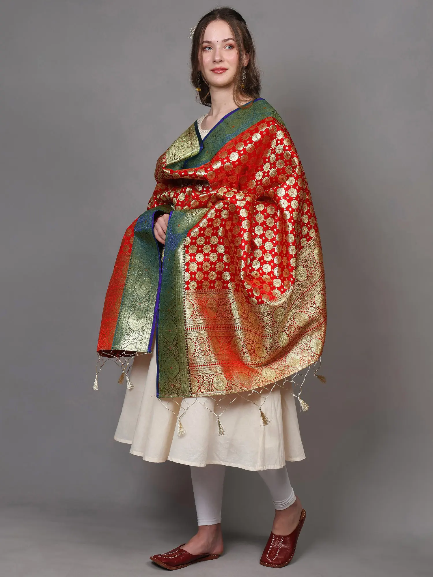 Banarasi Brocaded Zari Thread Dupatta with Floral Weave