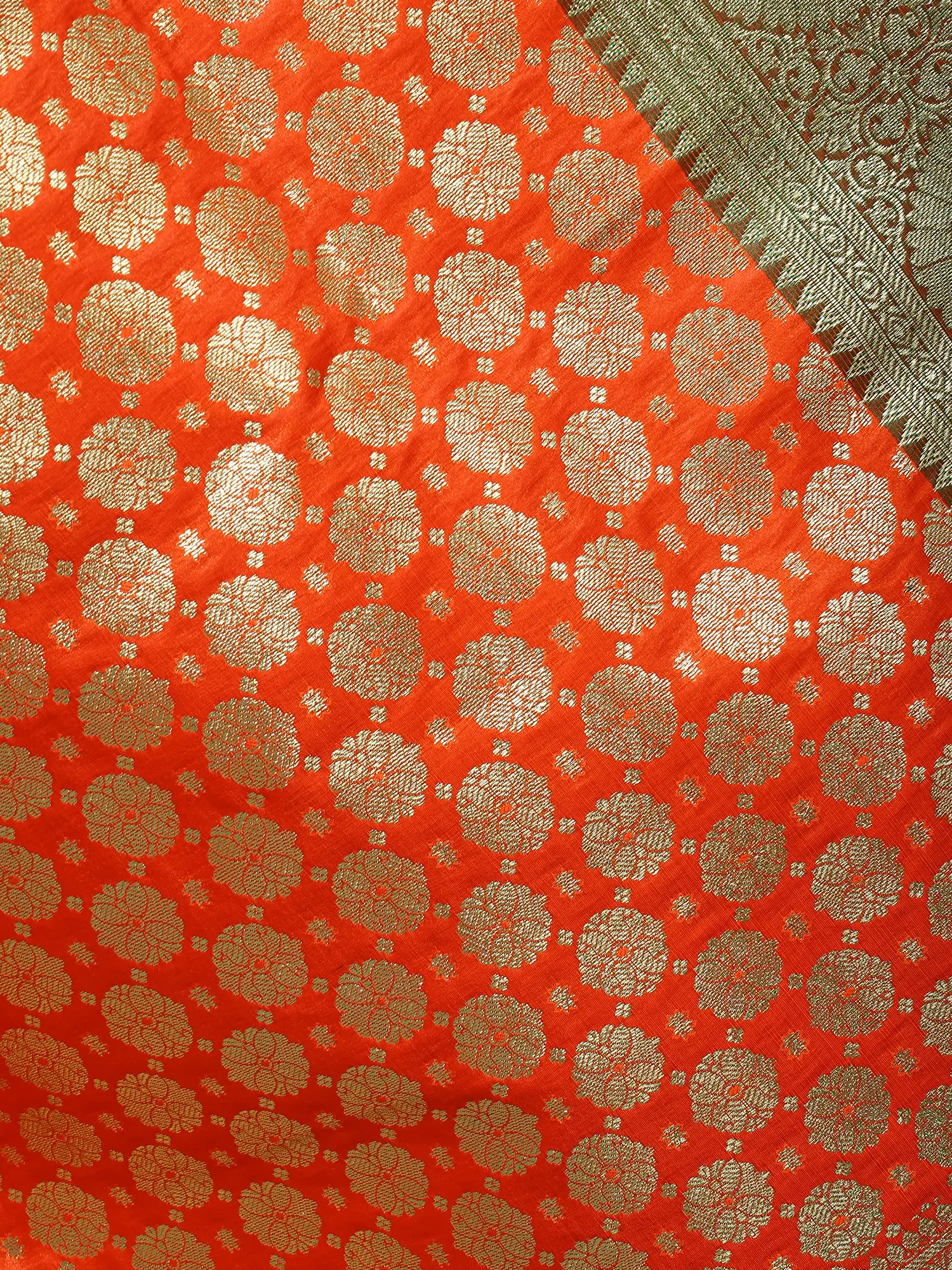 Brocade Banarasi Extra-Wide Dupatta with Woven Rose Meena Motif and Floral Zari Border