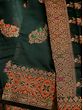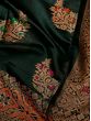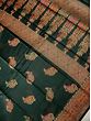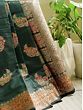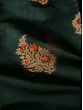 The saree has a richly adorned field, with paisley-shaped floral bunches beautifying the body of the saree. On the border, a floral creeper with two thin lines of vegetation on either side brings a lushness to the drape.