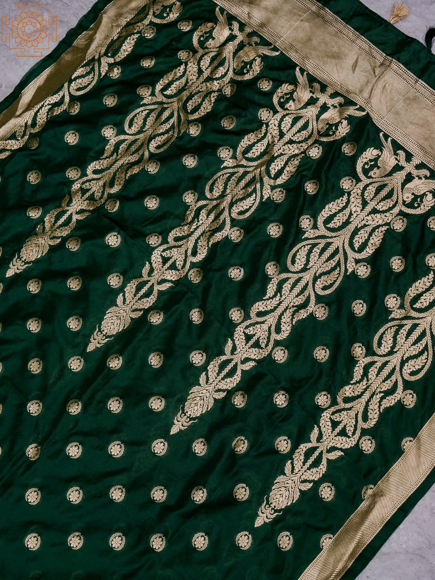 Elevate your style with our Banarasi Brocade Dupatta, a masterpiece from the historic city of Varanasi. This elegant piece showcases intricate parrot and kali motifs woven in golden Zari thread. The rich tradition of Banarasi weaving, which dates back to the Mughal era, is exemplified in this dupatta's exquisite design. The vibrant colours and opulent patterns add a touch of regality to any ensemble. Banarasi textiles remain a timeless choice, connecting the past with the present. Embrace the grandeur of Banarasi craftsmanship and let this dupatta adorn your wardrobe with grace.