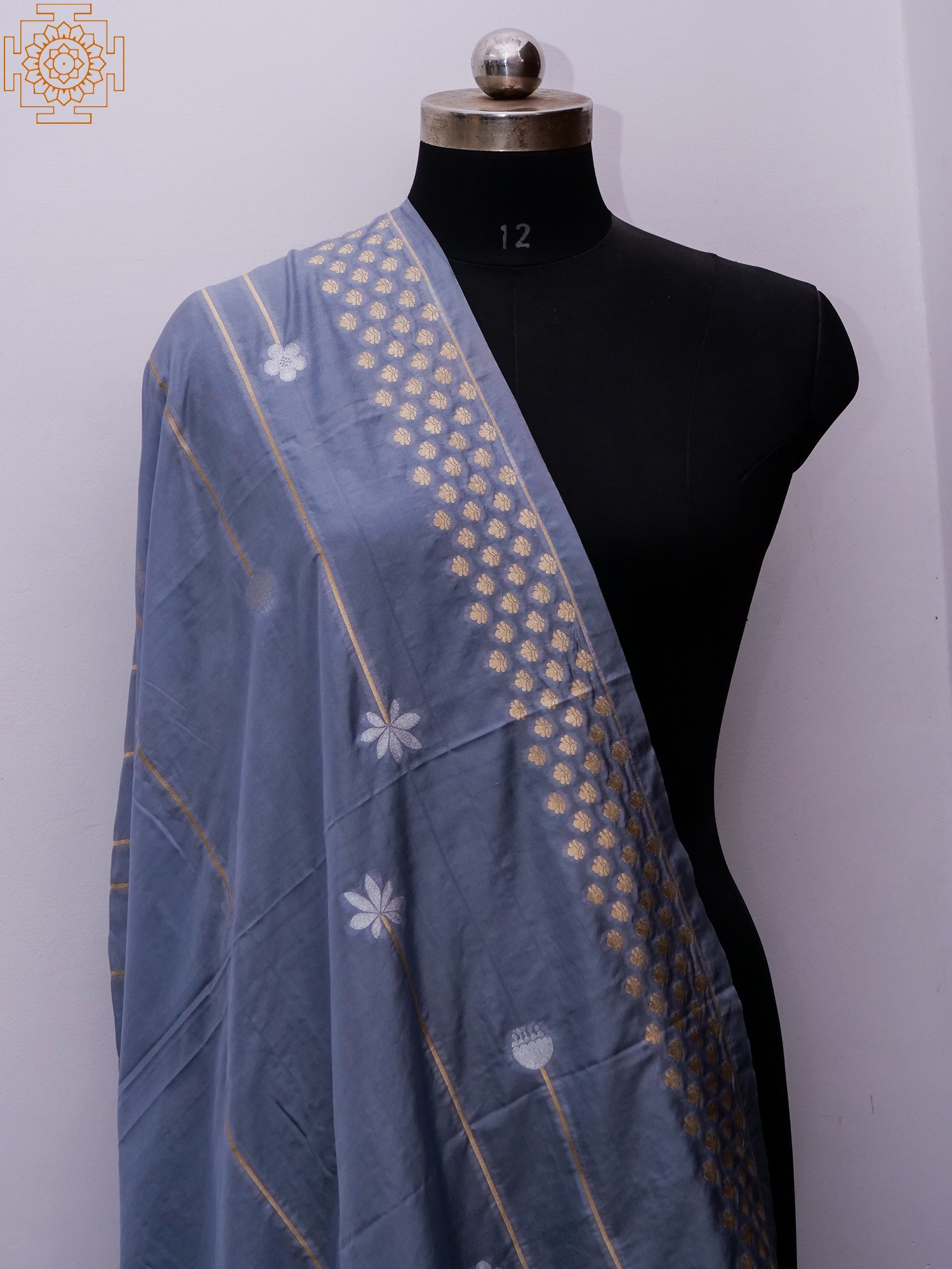Adorn yourself with the opulence of our Banarasi Brocaded Dupatta from Nepal, featuring a Floral Weave in Zari Thread. The fabric's origin can be traced to the ancient city of Banaras, India, where skilled artisans have perfected the art of brocade for centuries. This design has a storied history, reflecting the opulence of royal traditions. Today, it seamlessly aligns with modern fashion trends, adding a touch of timeless grandeur to your attire. The intricate zari thread work and vibrant colors make this dupatta a symbol of luxury and tradition.