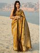 If grace could be presented as a piece of clothing, it would be this handloom Banarasi saree, crafted with linen for modern women.