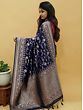 An intricate floral Jaal or net on the field of this Banarasi Silk Saree is ready to capture hearts and attention as your go-to partywear saree. The soft silken fabric of the Banarasi saree is wreathed in a gorgeously blooming mesh of floral vines, creating a stunning visual detailing against the vibrant silk.