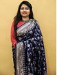 On the border of the Banarasi Saree are three rows of natural motifs, geometric patterns, and blossoming creepers. The saree's pallu displays a refined brocade work, creating Mughal motifs against the silk with Zari threads which infuse the saree with a lovely traditional appeal.