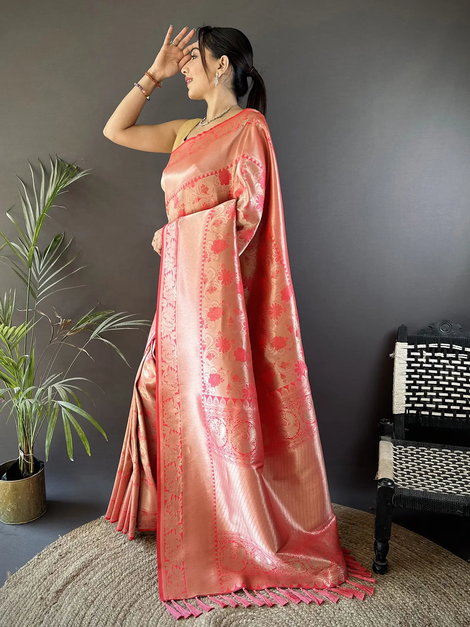 Pink Soft Lichi Silk Saree With Beautiful Rich Pallu And Intricate Jacquard Weaving For Traditional Wedding And Party Wear