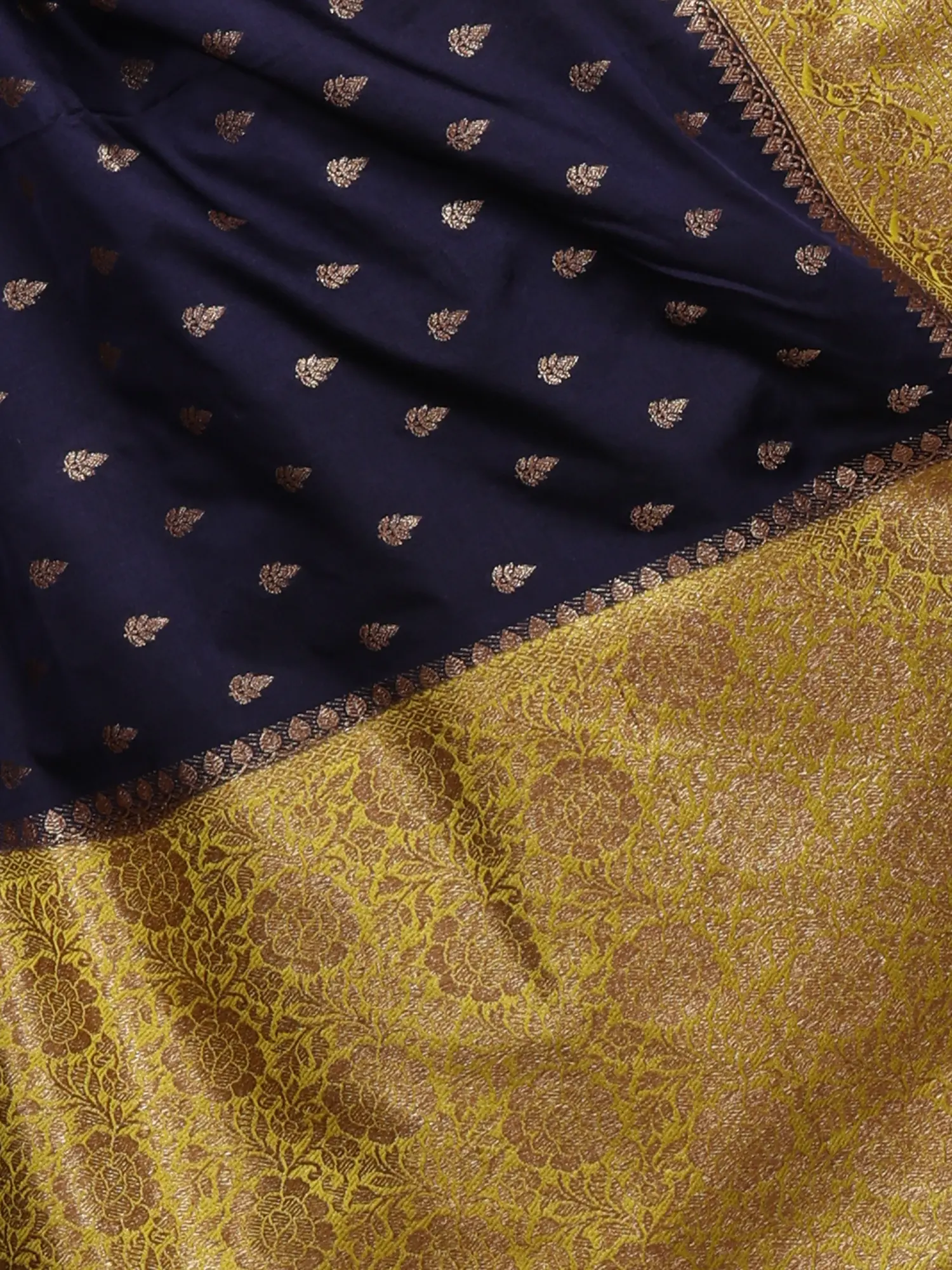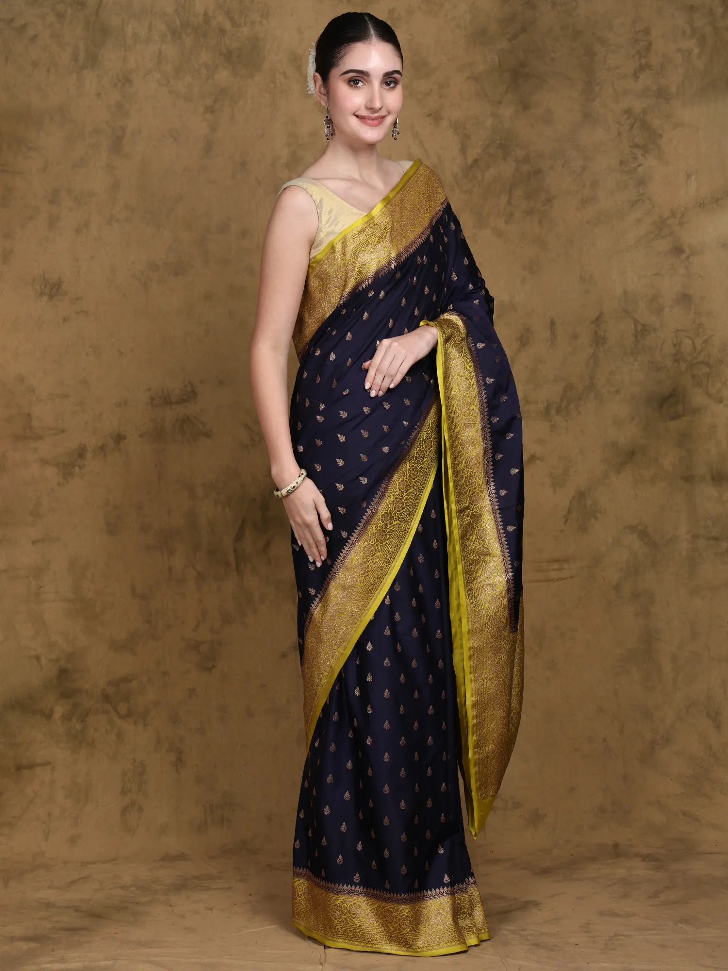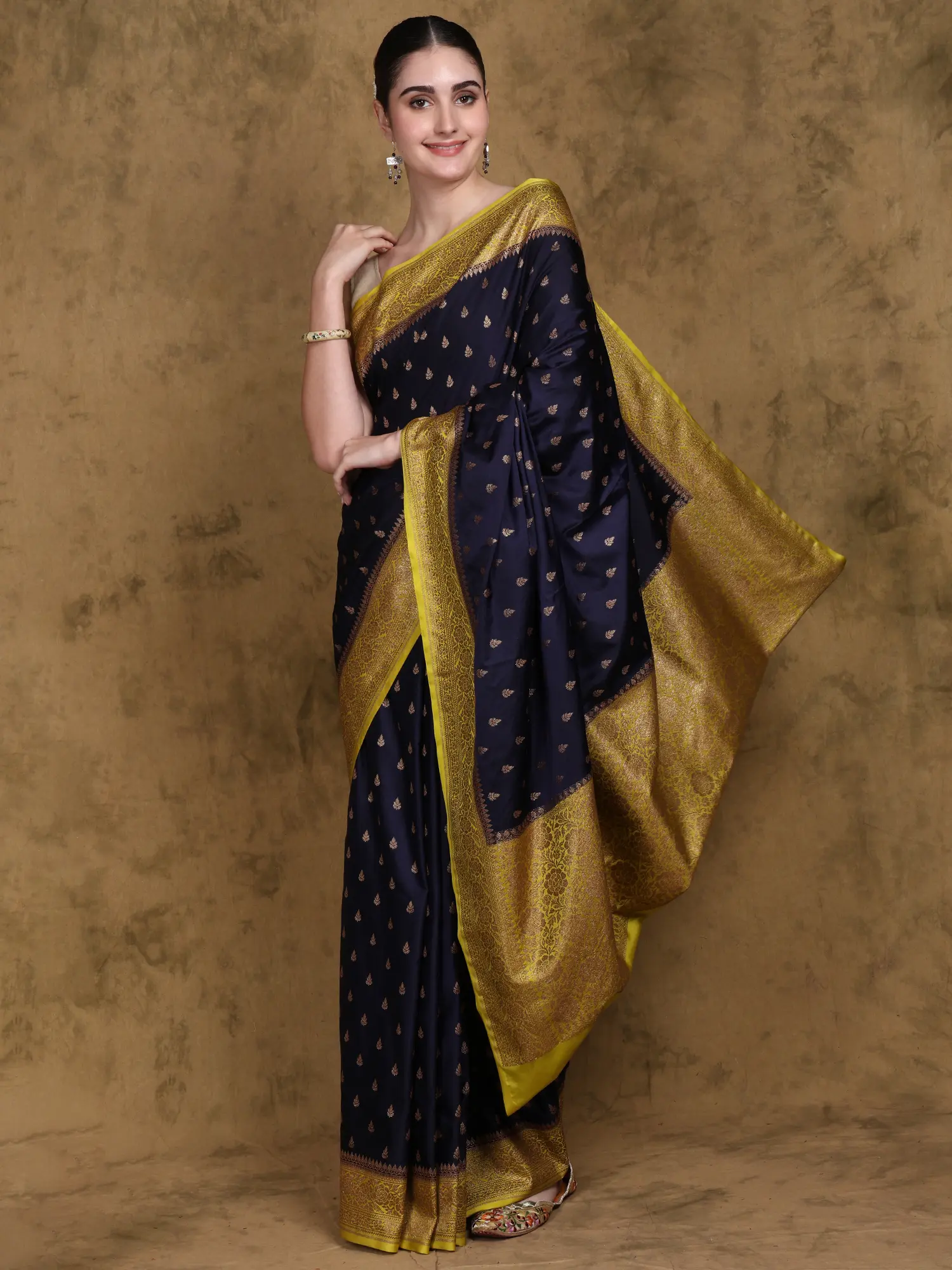 Royal Blue Pure Silk Banarasi Saree with Zari Border Traditional Motifs