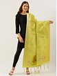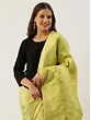 Add the classic and luxurious beauty of Banarasi to your looks with this Banarasi silk dupatta. The field is embellished with an ethnic diamond pattern, bordered by intricate designs and Meenakari-inspired edges, adding a beautiful vivid feel to the fabric.