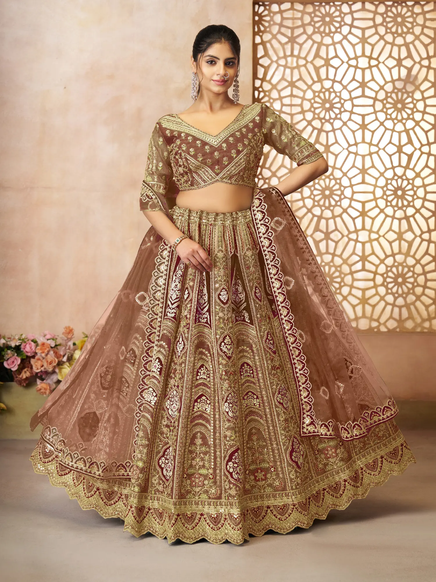 Maroon Taffeta Silk All Over Zari Butis Lehenga Choli with Soft Net Dupatta