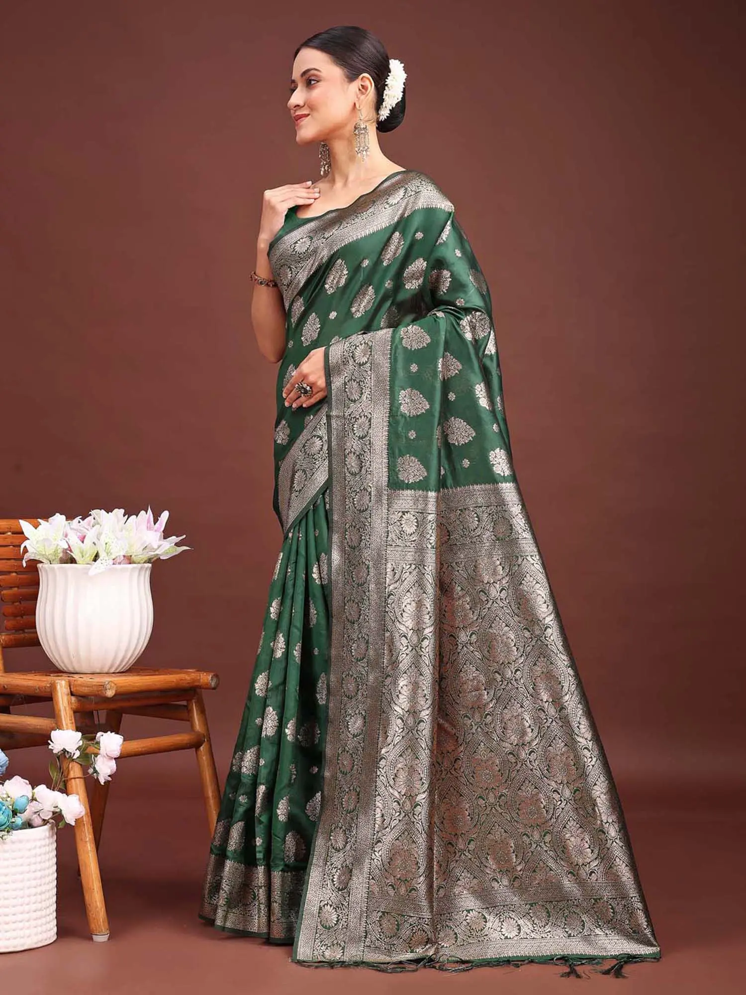 Crafted from premium Banarasi silk for a luxurious sheen and comfortable drape.