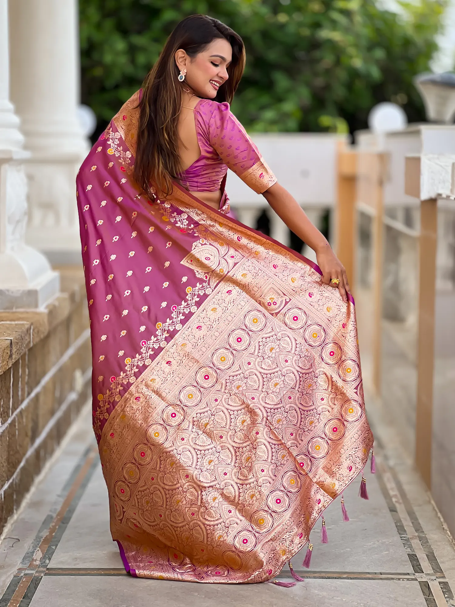 Crafted from pure Banarasi silk, handwoven by master artisans using time-honored techniques.
