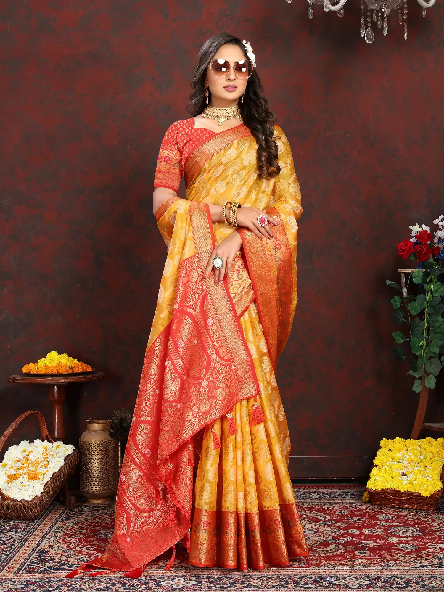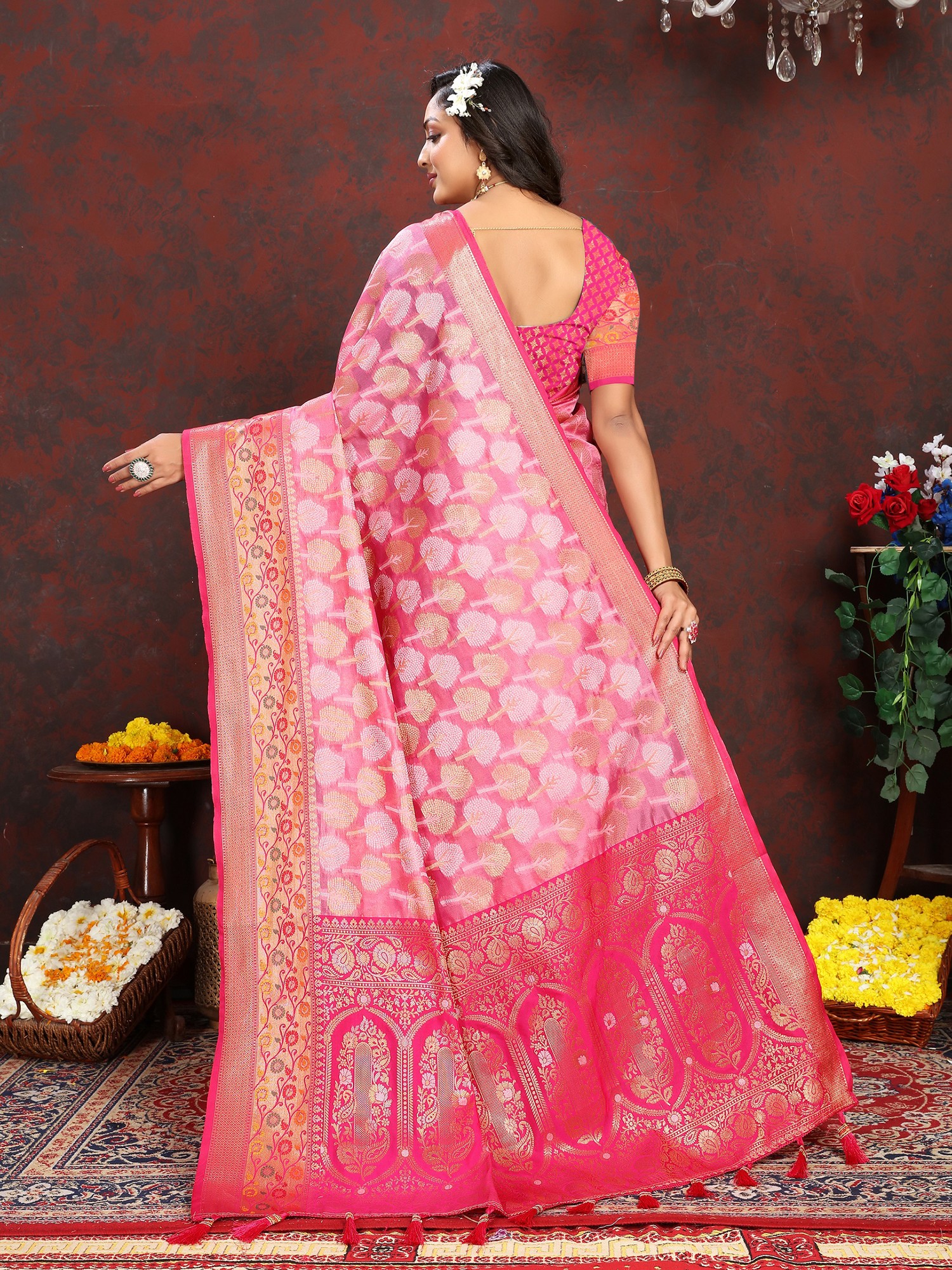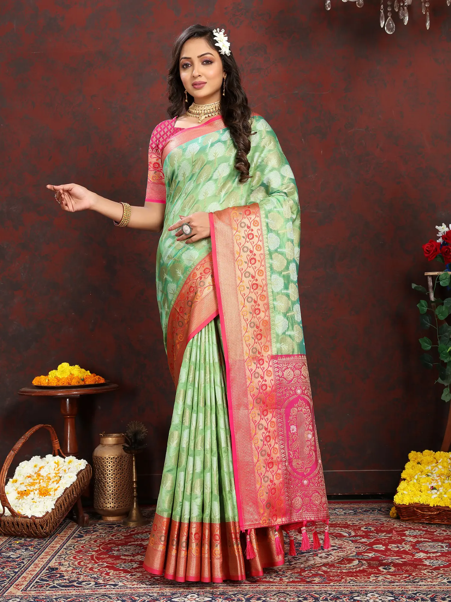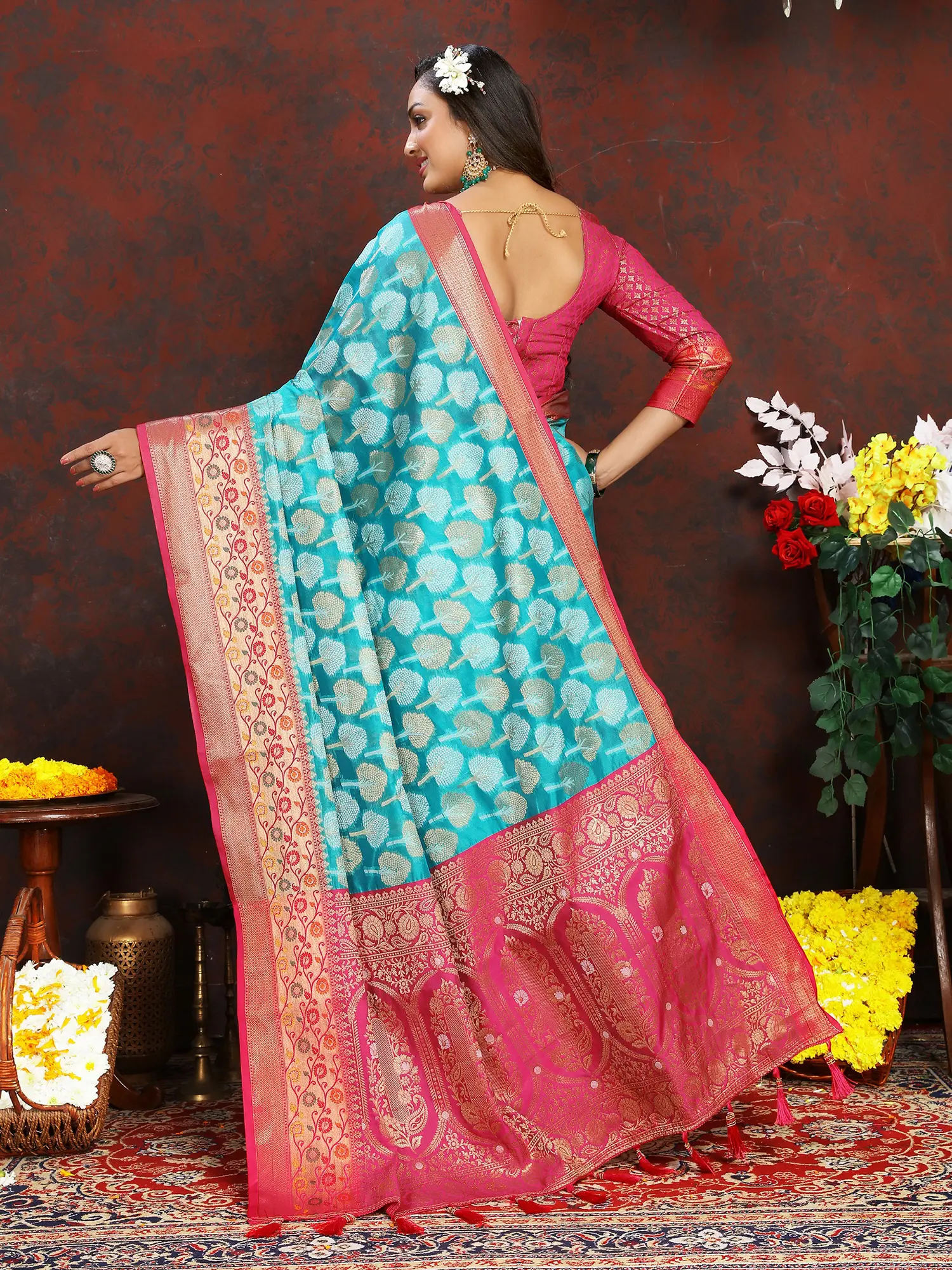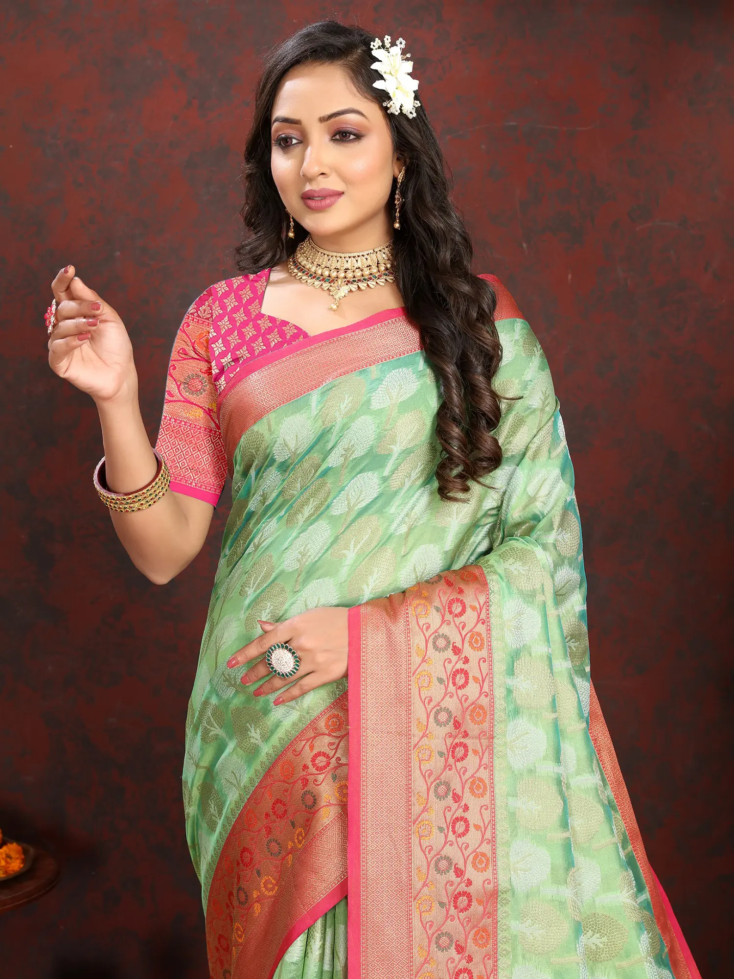 Zig-Zag Pattern Lichi Silk Attractive Festive Wear Saree With Matching Blouse