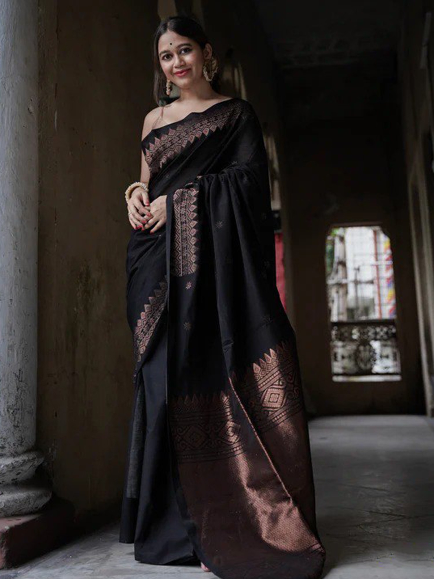 Silk Saree with Zari-Woven Border and Geometric Motifs All-Over