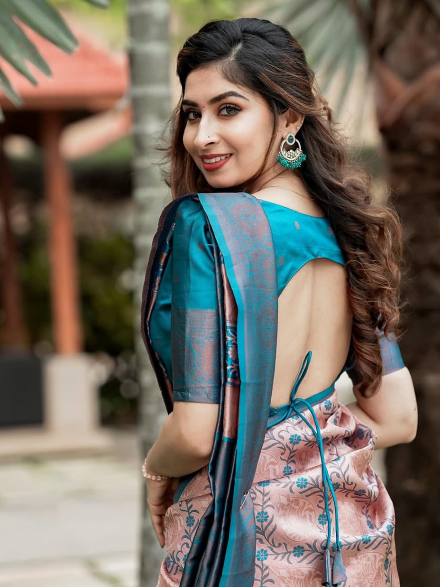 Sequins Weaving Silk Saree with Digital Print Blouse