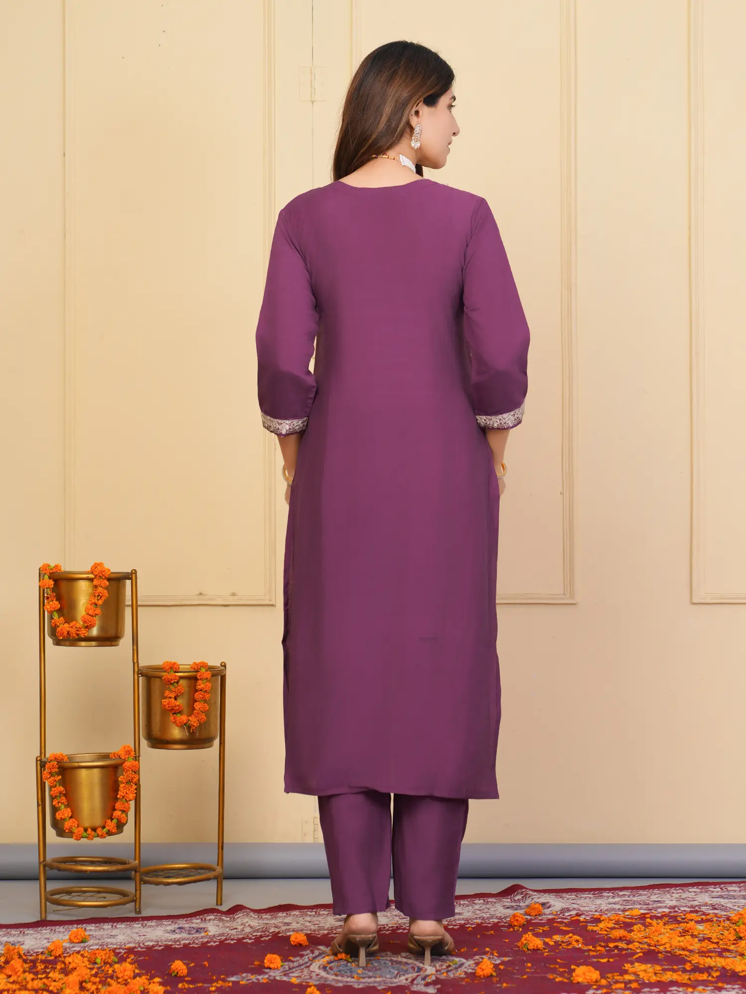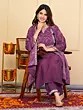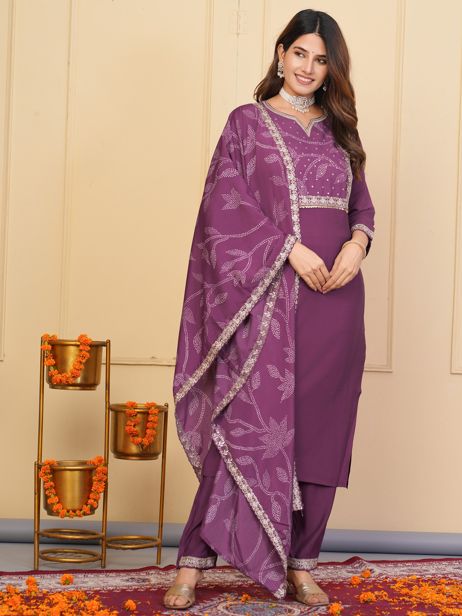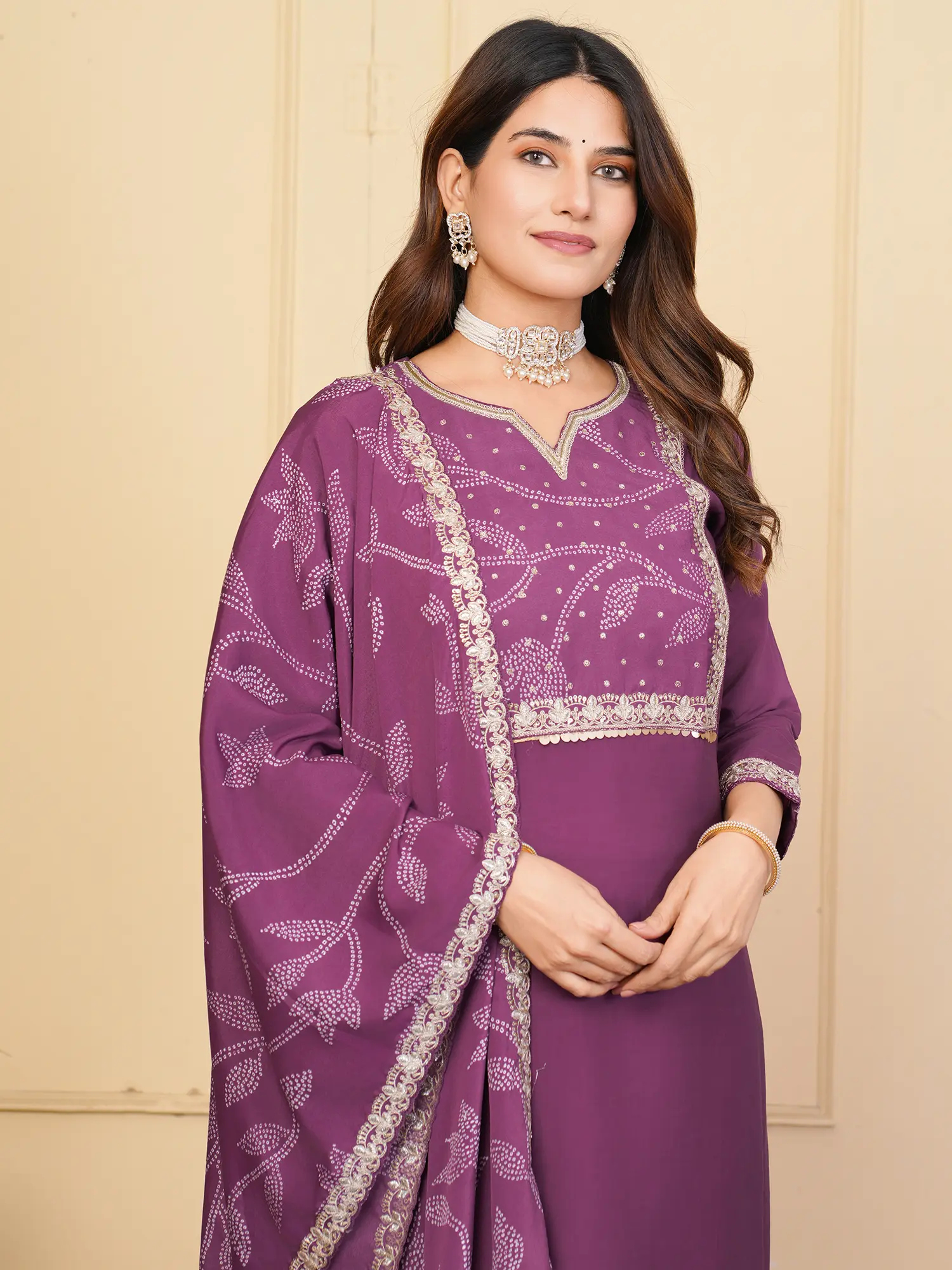 Art-Silk Palazzo Salwar Kameez Suit with Round-Neck and Stripe Printed Dupatta