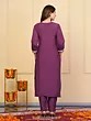 Three Piece Set Cotton Multicolor Kalka Printed Long Jacket With Silver-Grey Satin Crop-top And Pant