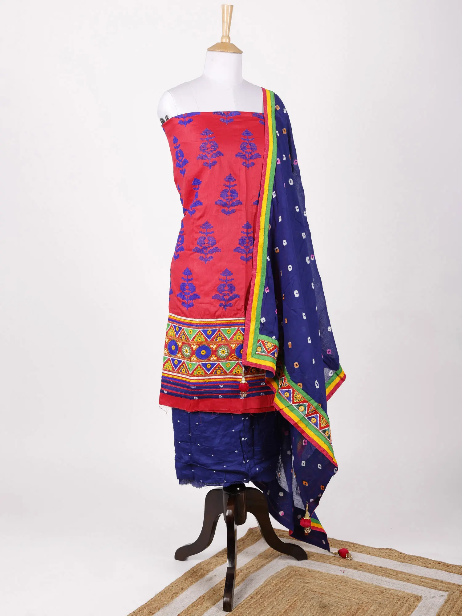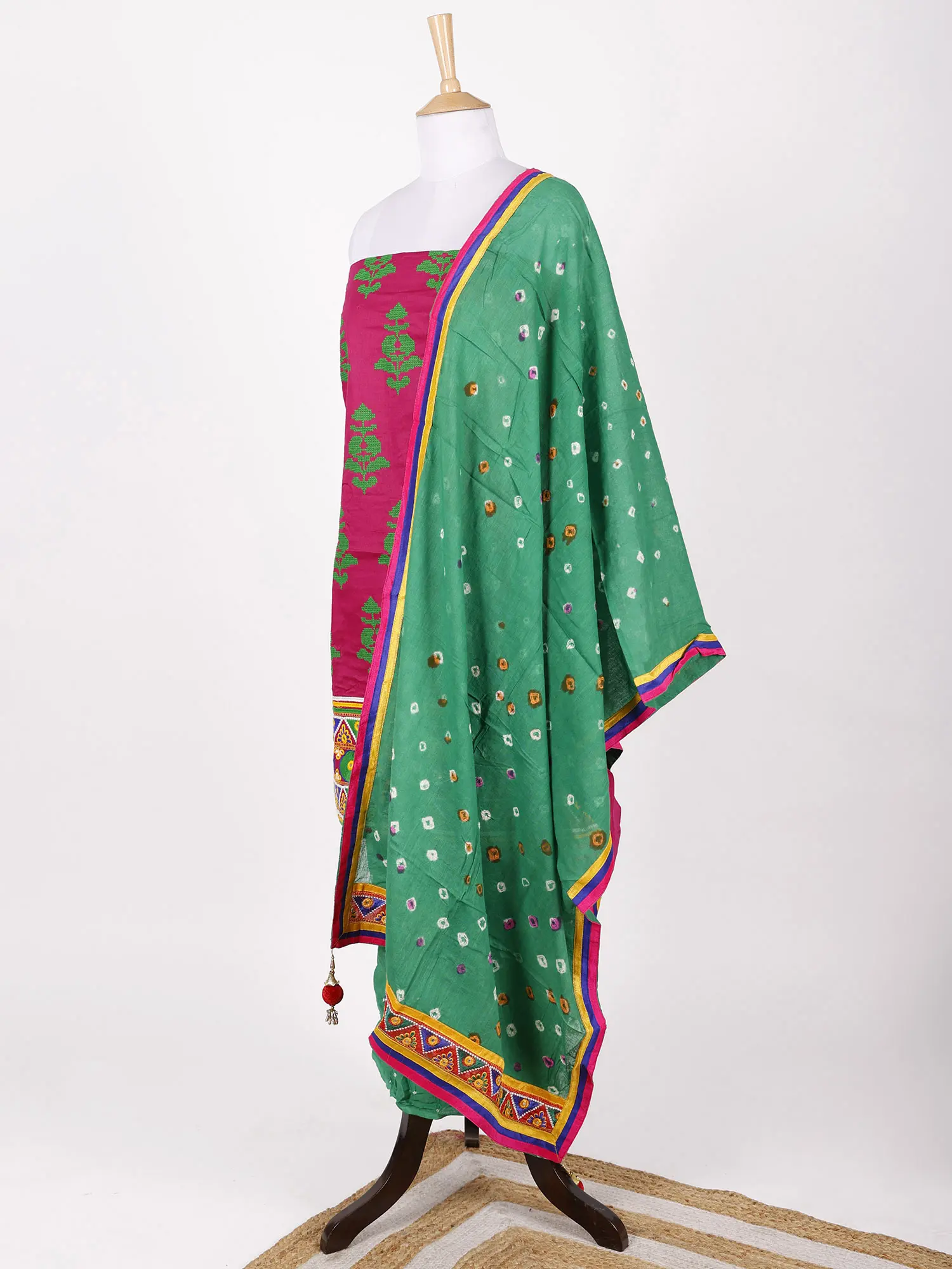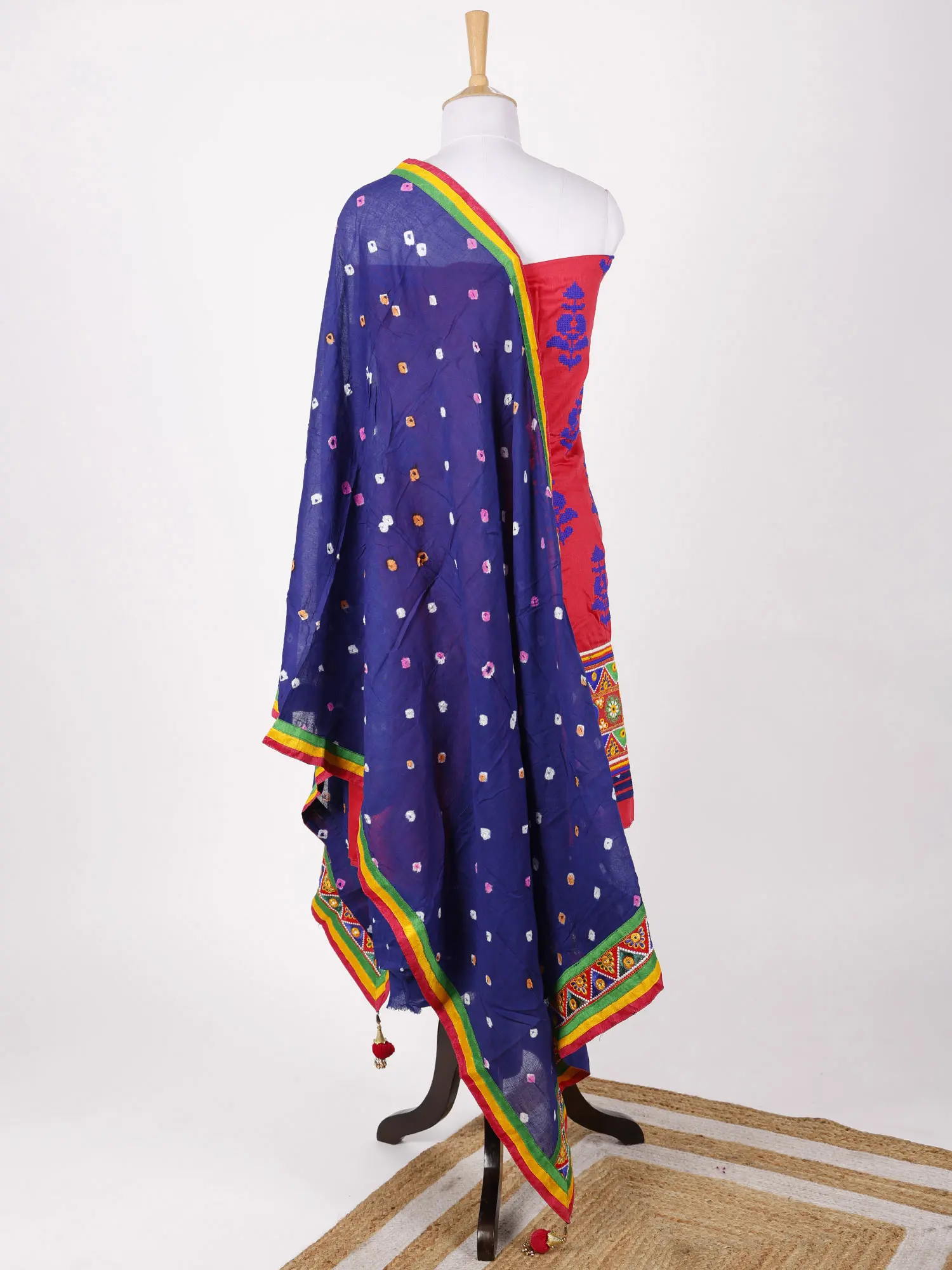 Bandhani Salwar Kameez Fabric and Dupatta from Gujarat with Multicolor Embroidery and Mirrors