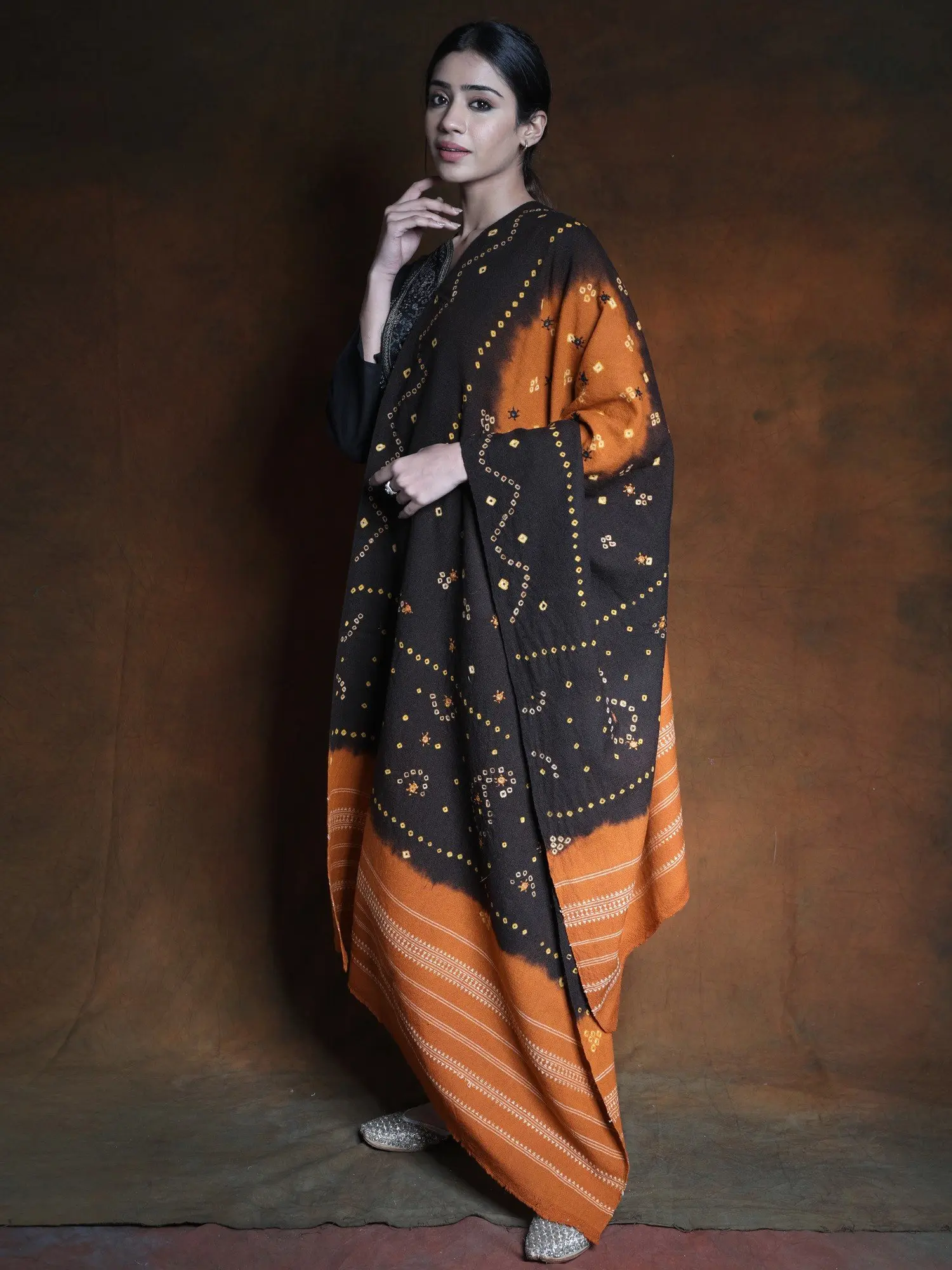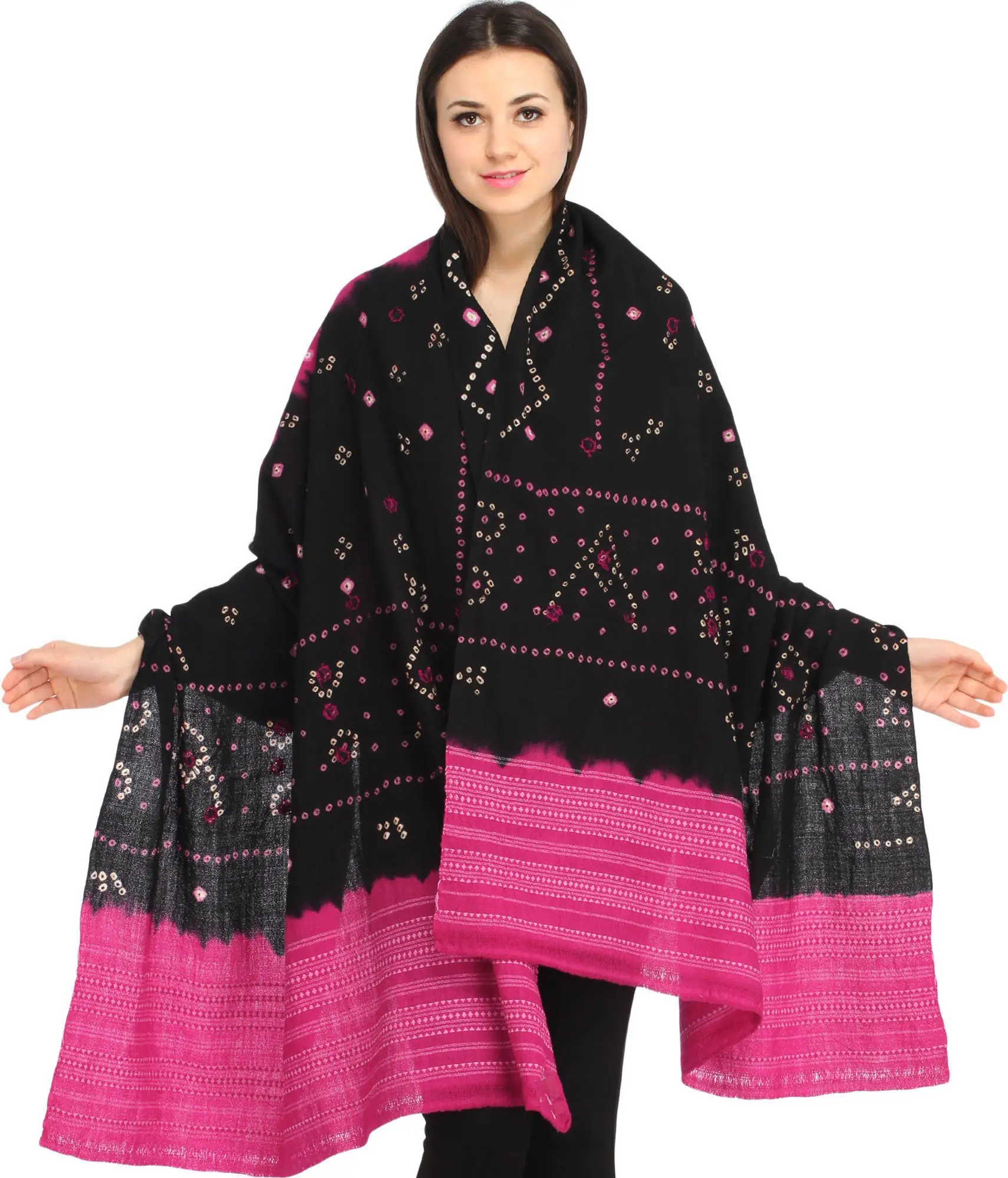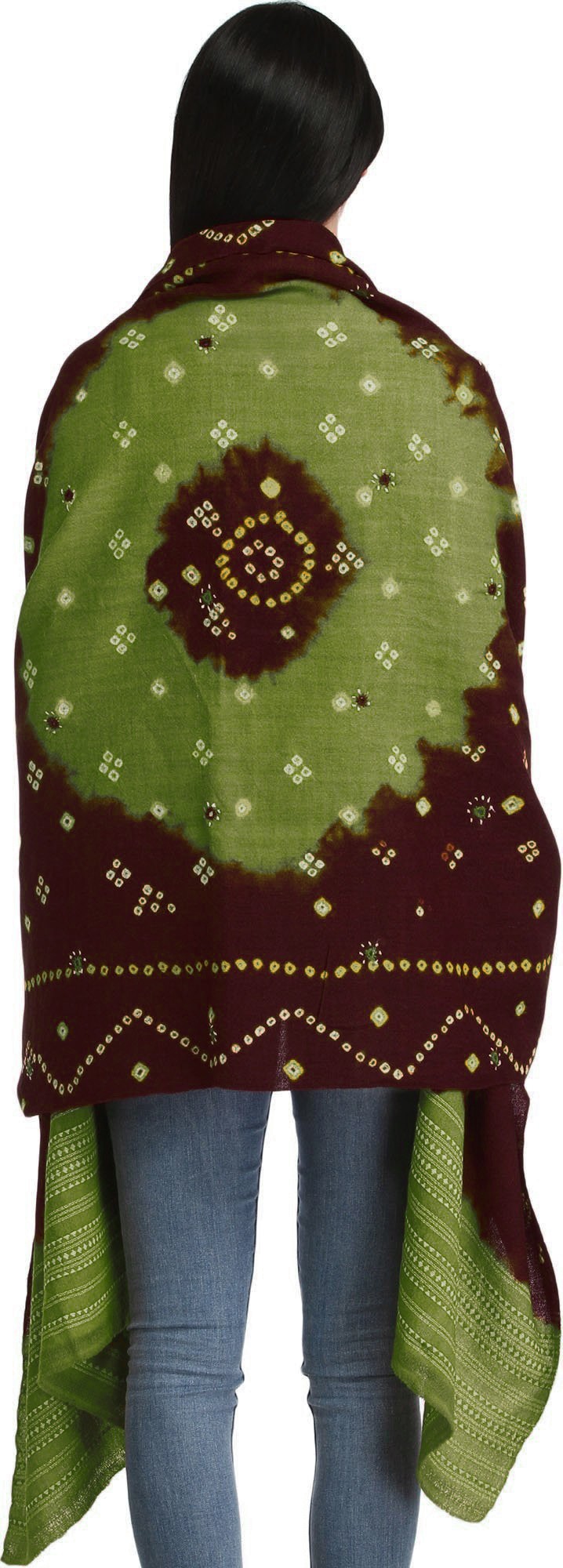 Ming-Green Jamawar Scarf from Amritsar with Wool Embroidery and Faux Pearls