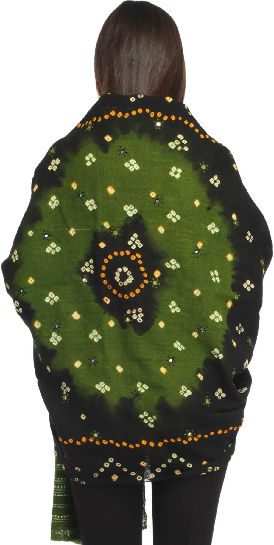 Bandhani Tie-Dye Shawl from Gujarat with Embroidered Mirrors