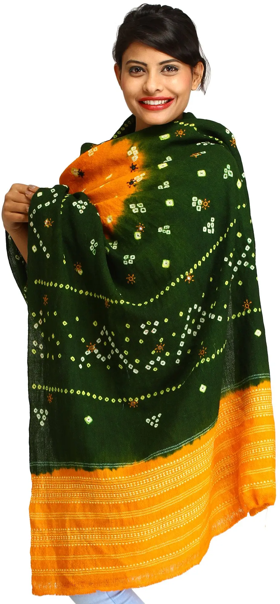 Double Shaded Bandhani Tie-Dye Shawl with Mirror Embroidered Palla from Gujarat