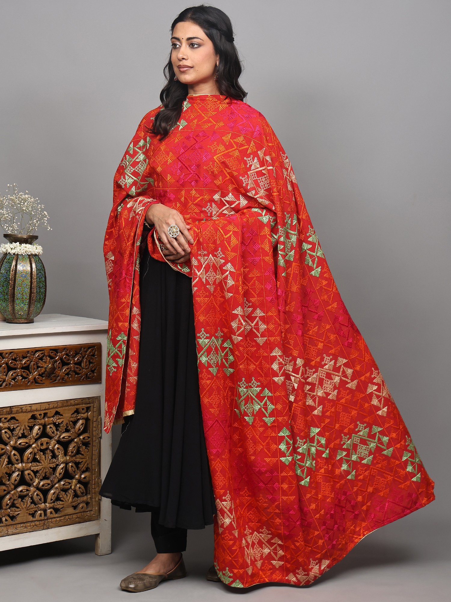 A Tapestry of Tradition: The Barbados-Cherry Phulkari Dupatta