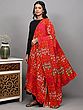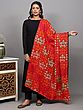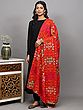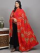 Mars-Red Phulkari Dupatta from Punjab with Embroidered Wedding Palanquin Border and Bead-Mirror Work