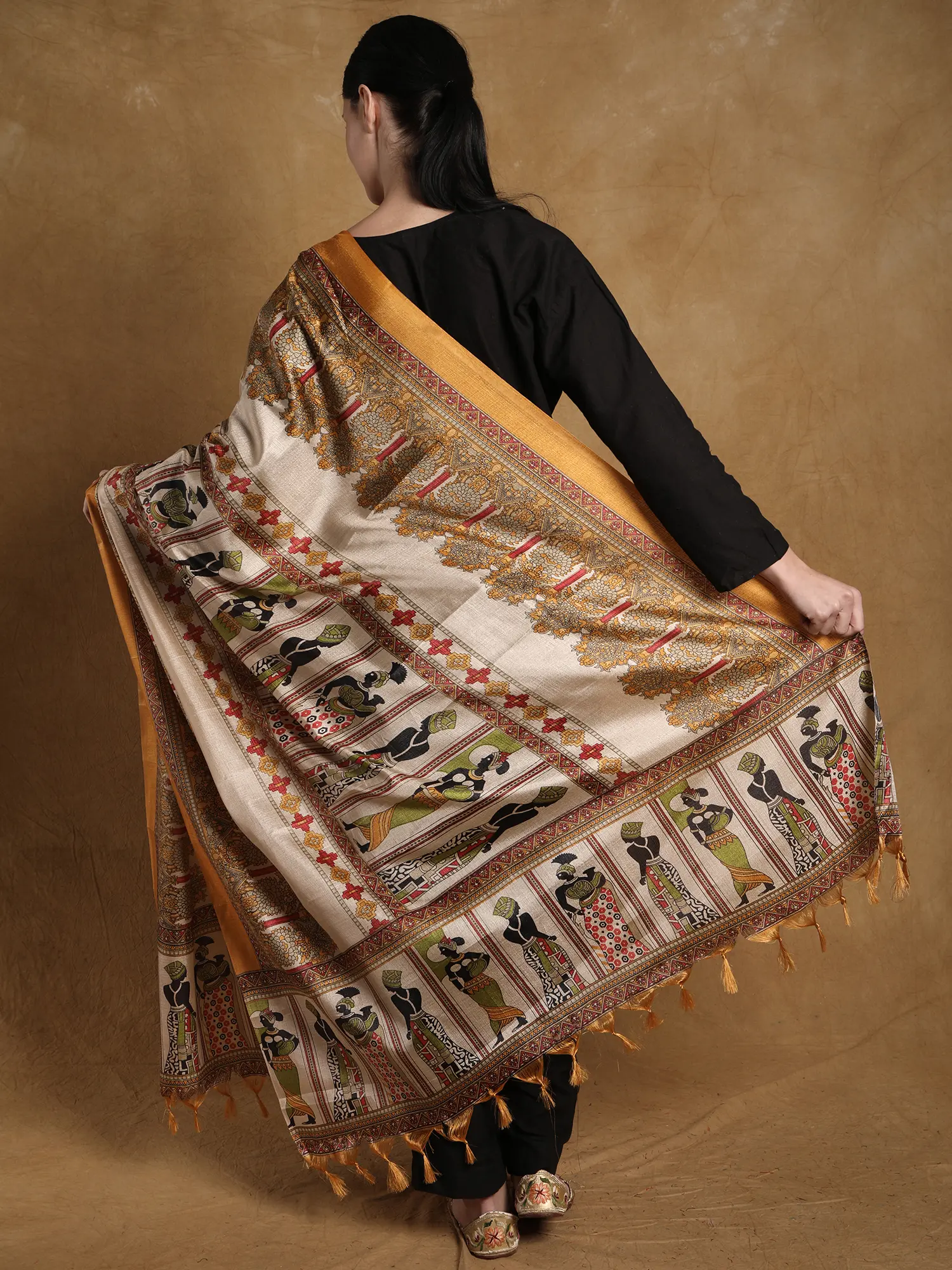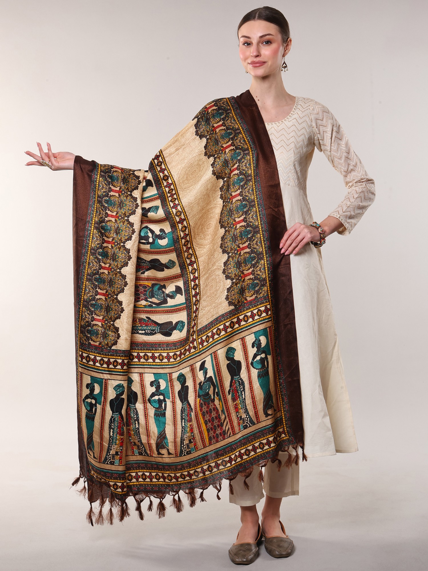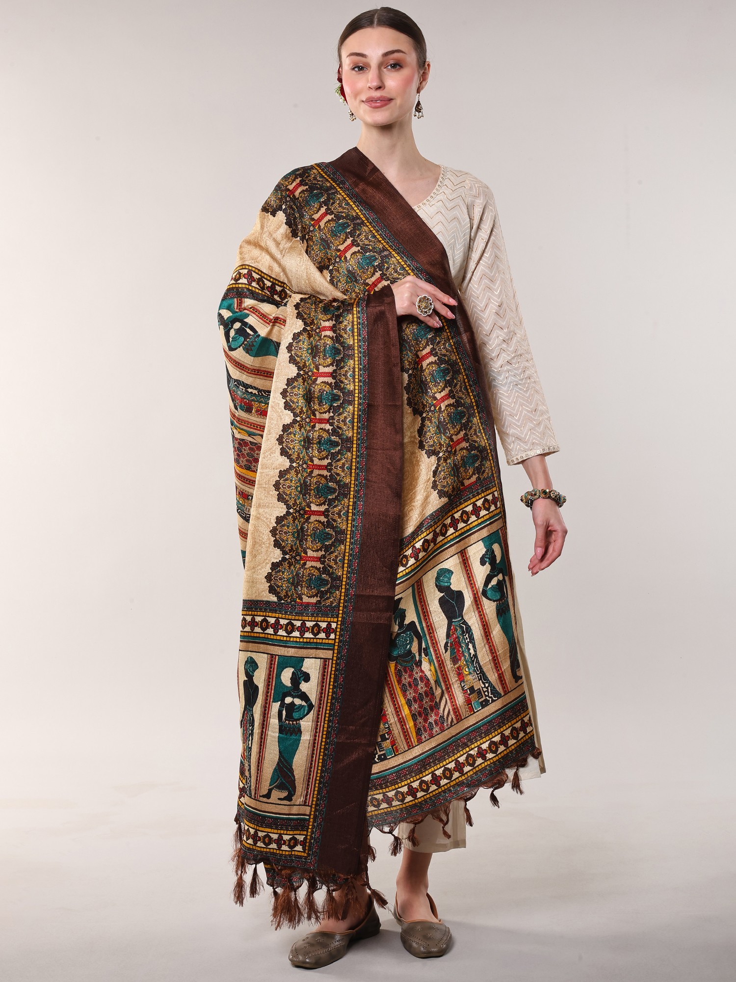 Batik Afro Women Motif Printed Banglori Satin Dupatta, a fusion of tradition and contemporary artistry. Crafted from luxurious Banglori satin, this dupatta features an inspiring Afro-women motif, celebrating empowerment and cultural diversity. Batik, an ancient resist-dye technique, is reinvented here, marrying tradition with modern designs. The vivid colors and intricate patterns resonate with current fashion trends. Skilled artisans meticulously print each motif, and the tassel details add a playful touch. This precious accessory embodies a rich cultural narrative, making it a cherished addition to your wardrobe.