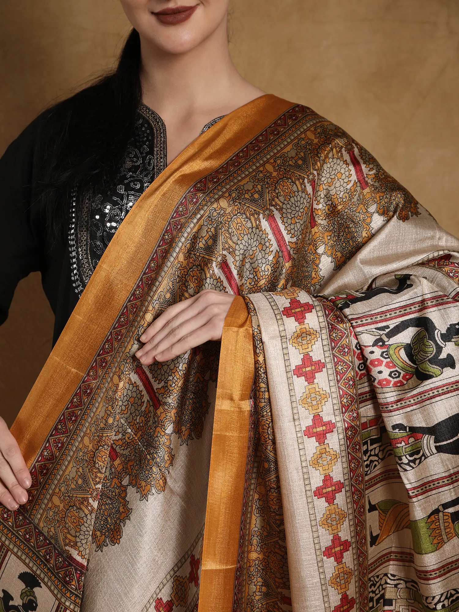Batik Afro Women Motif Printed Banglori Satin Dupatta, a fusion of tradition and contemporary artistry. Crafted from luxurious Banglori satin, this dupatta features an inspiring Afro-women motif, celebrating empowerment and cultural diversity. Batik, an ancient resist-dye technique, is reinvented here, marrying tradition with modern designs. The vivid colors and intricate patterns resonate with current fashion trends. Skilled artisans meticulously print each motif, and the tassel details add a playful touch. This precious accessory embodies a rich cultural narrative, making it a cherished addition to your wardrobe.