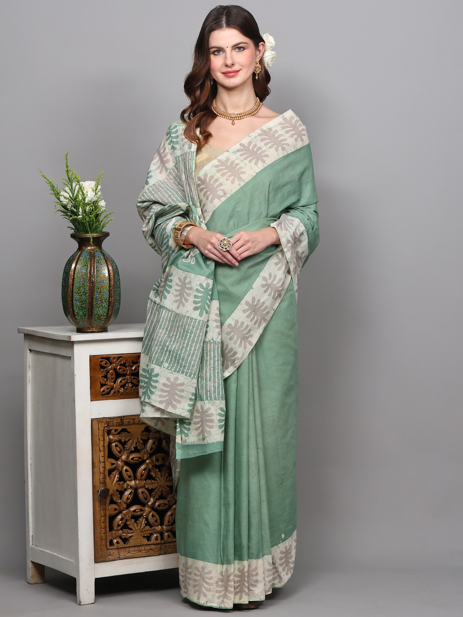 Chettinad Cotton Saree with Woven Buttis and Rudraksha Border from Kumbakonam