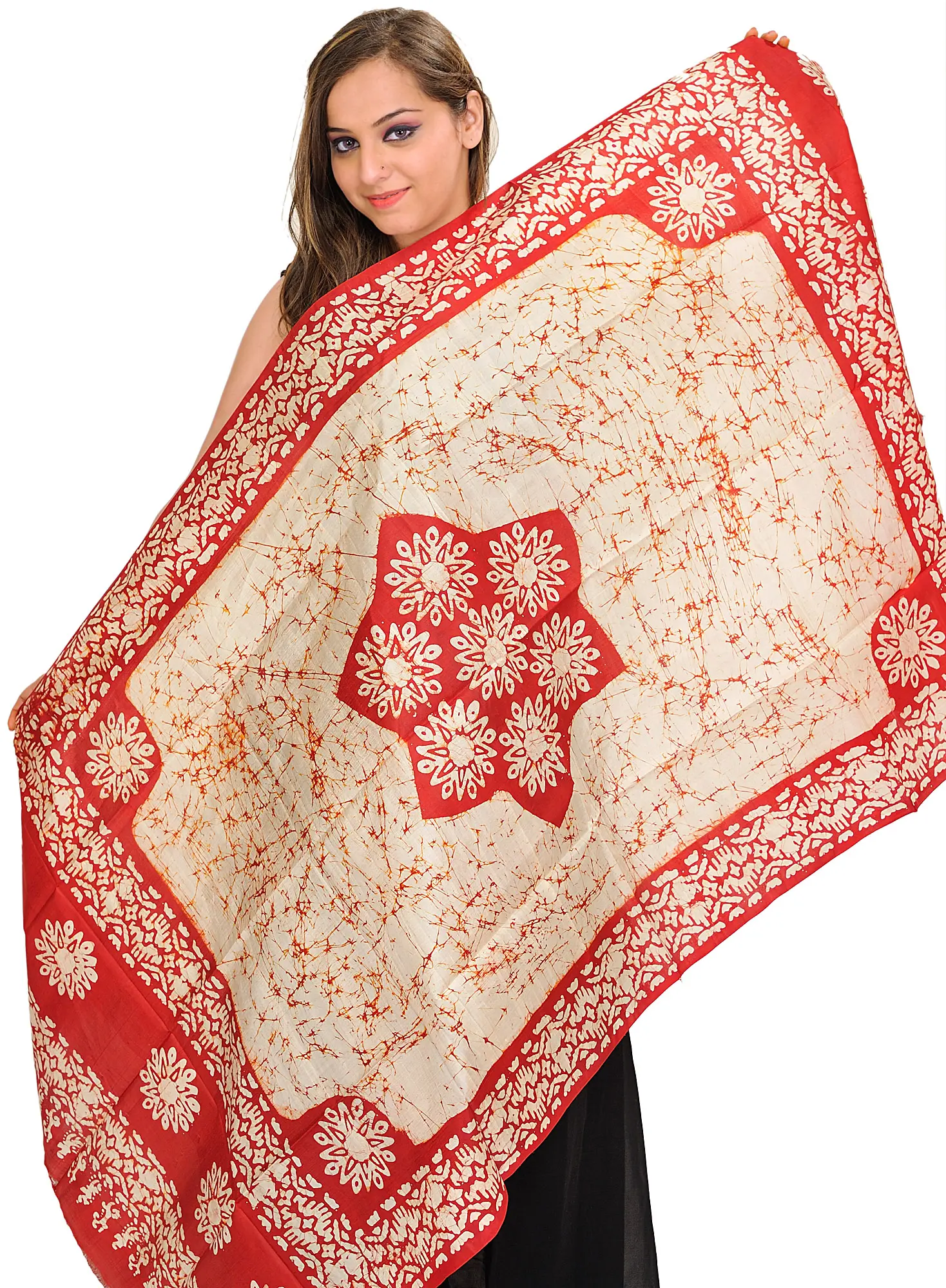 Lot of Three Batik-Dyed Silk-Wool Stoles from Nepal