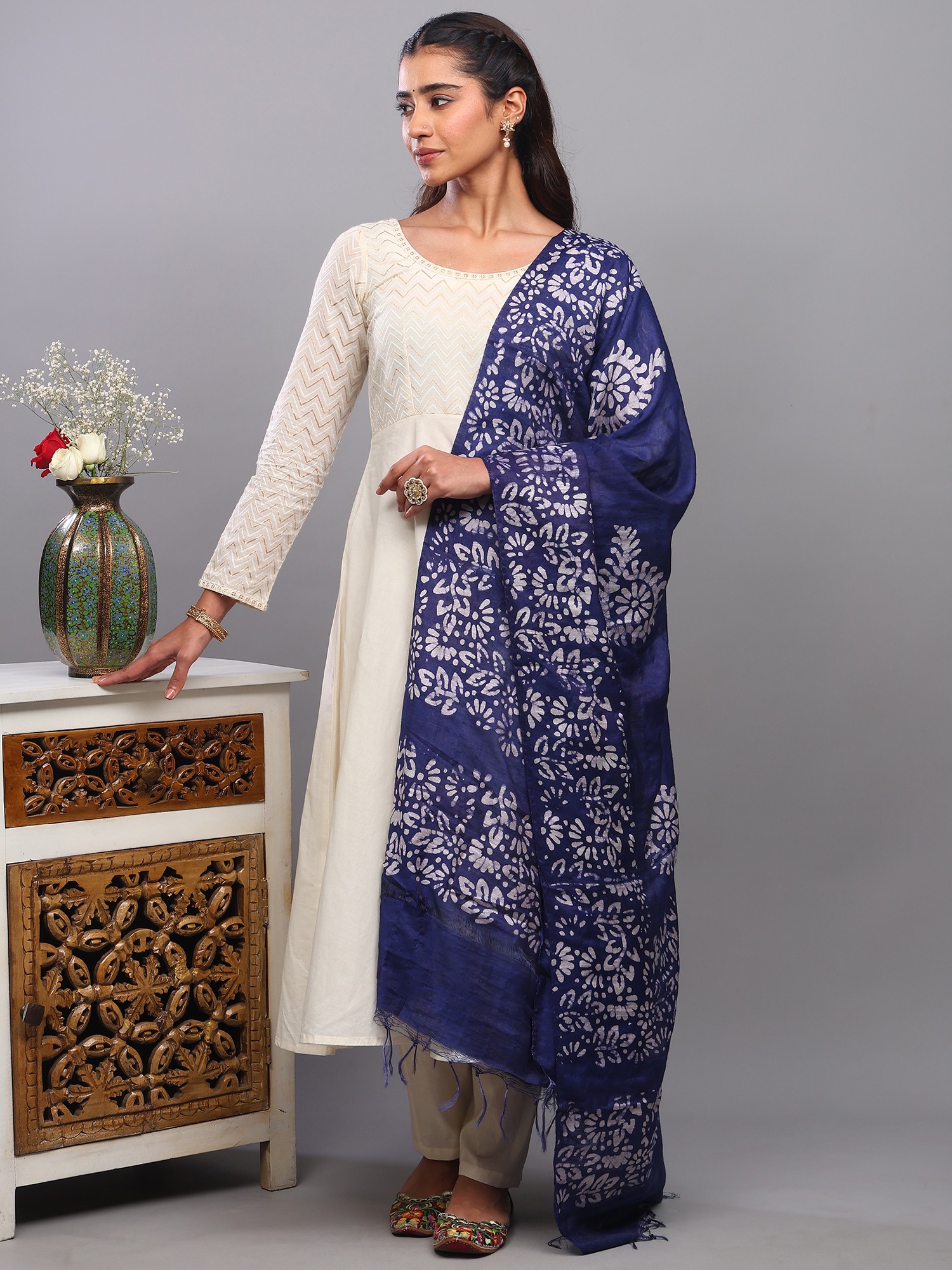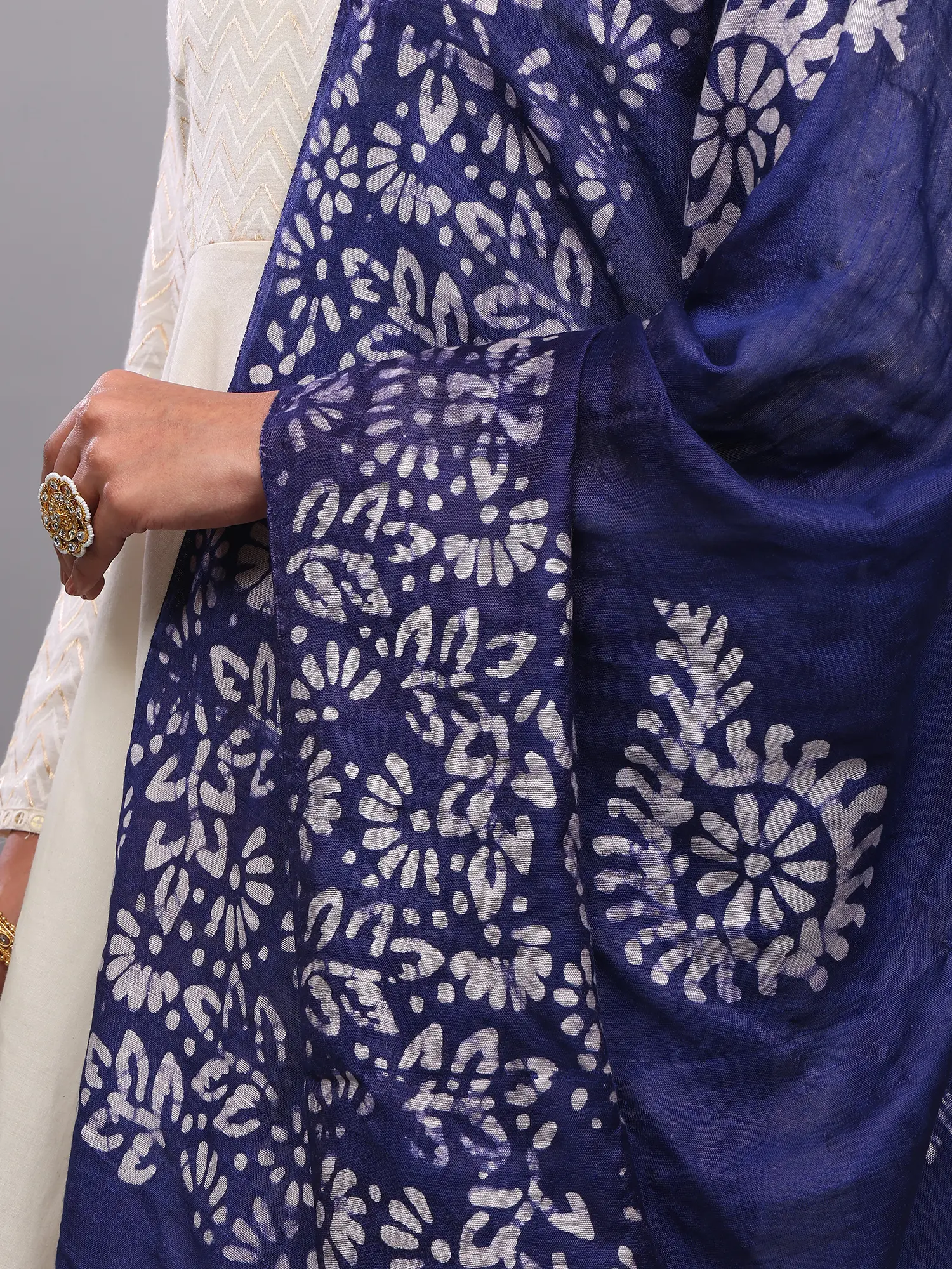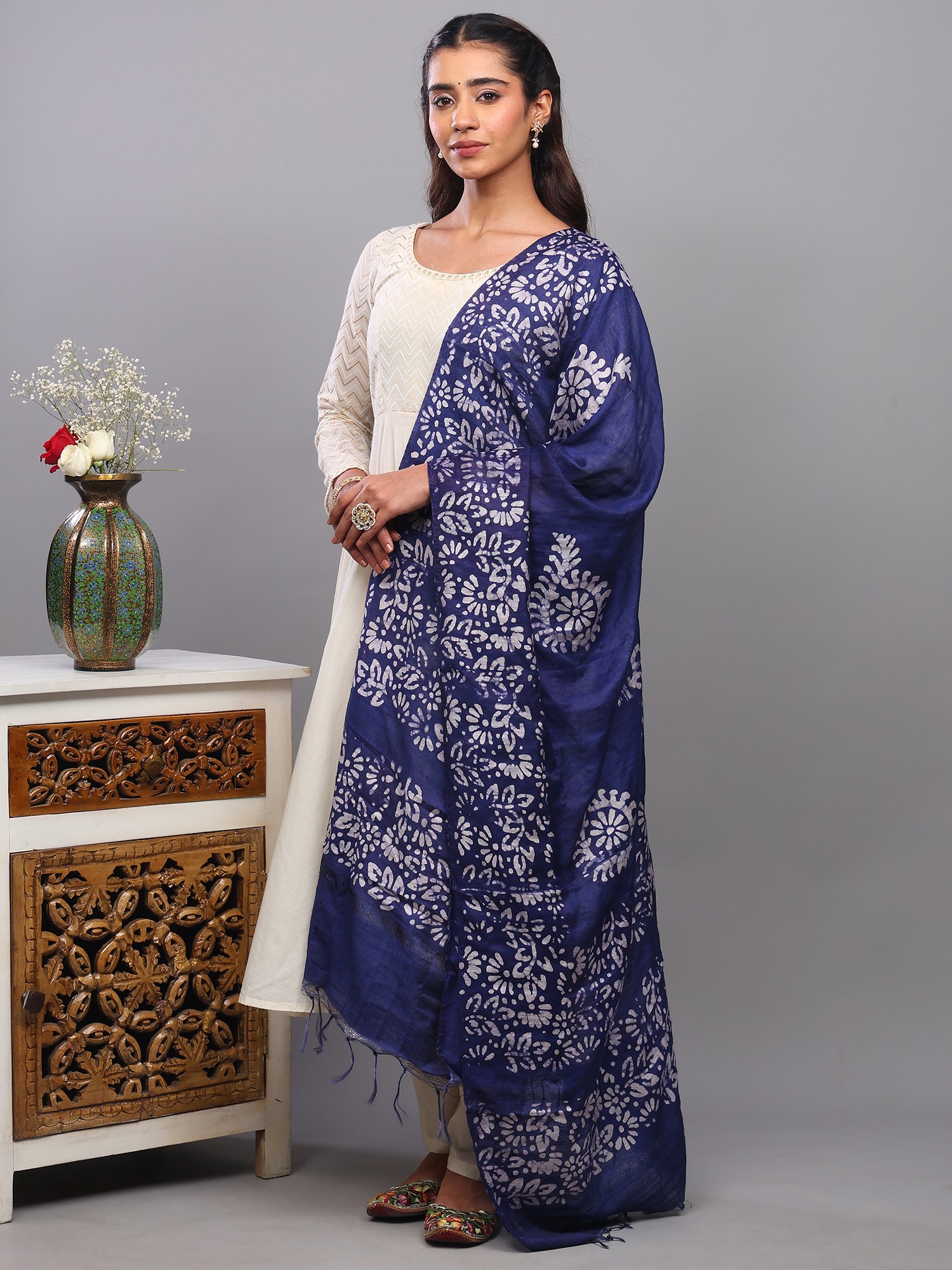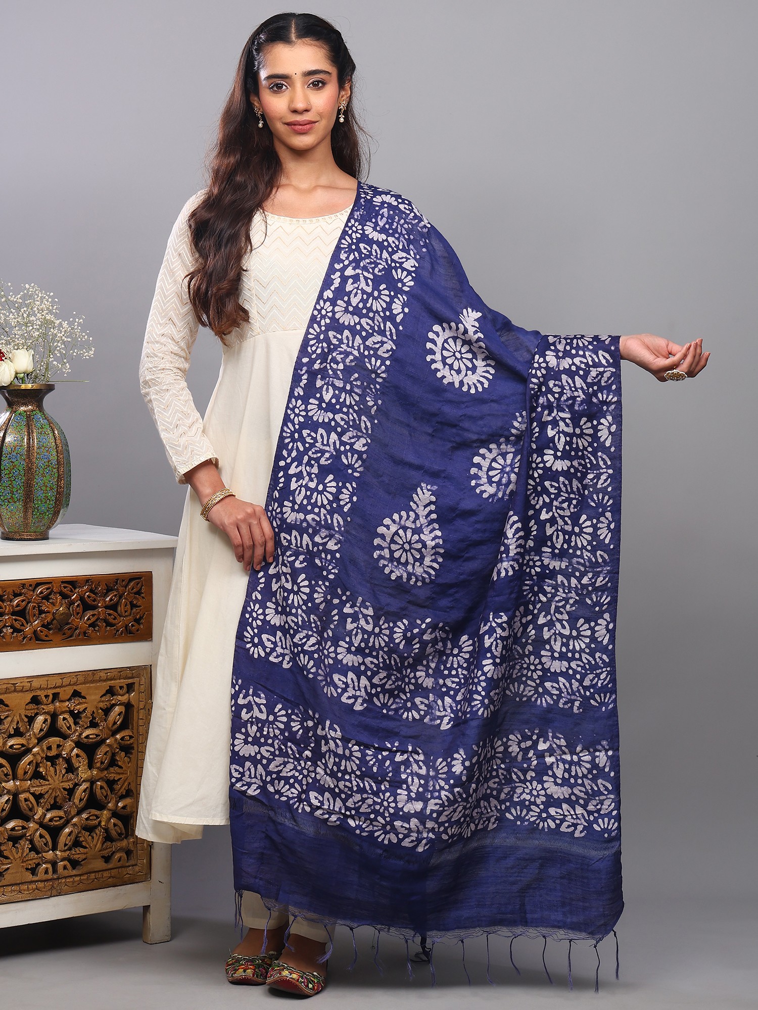 A Touch of Telangana Artistry: The Batik Floral Dupatta