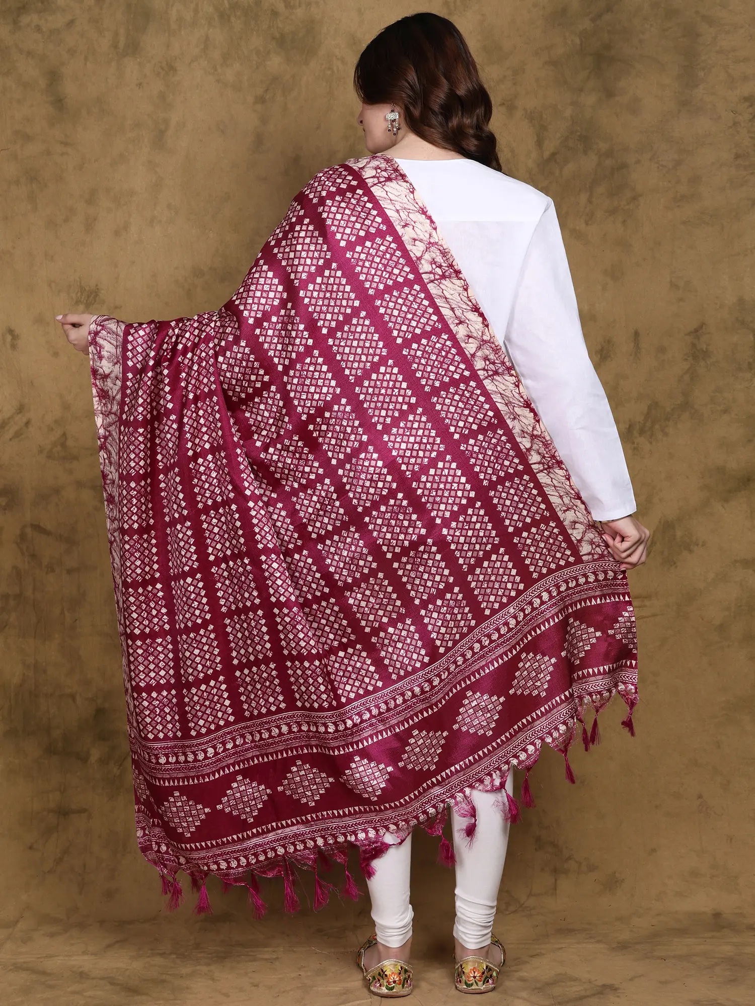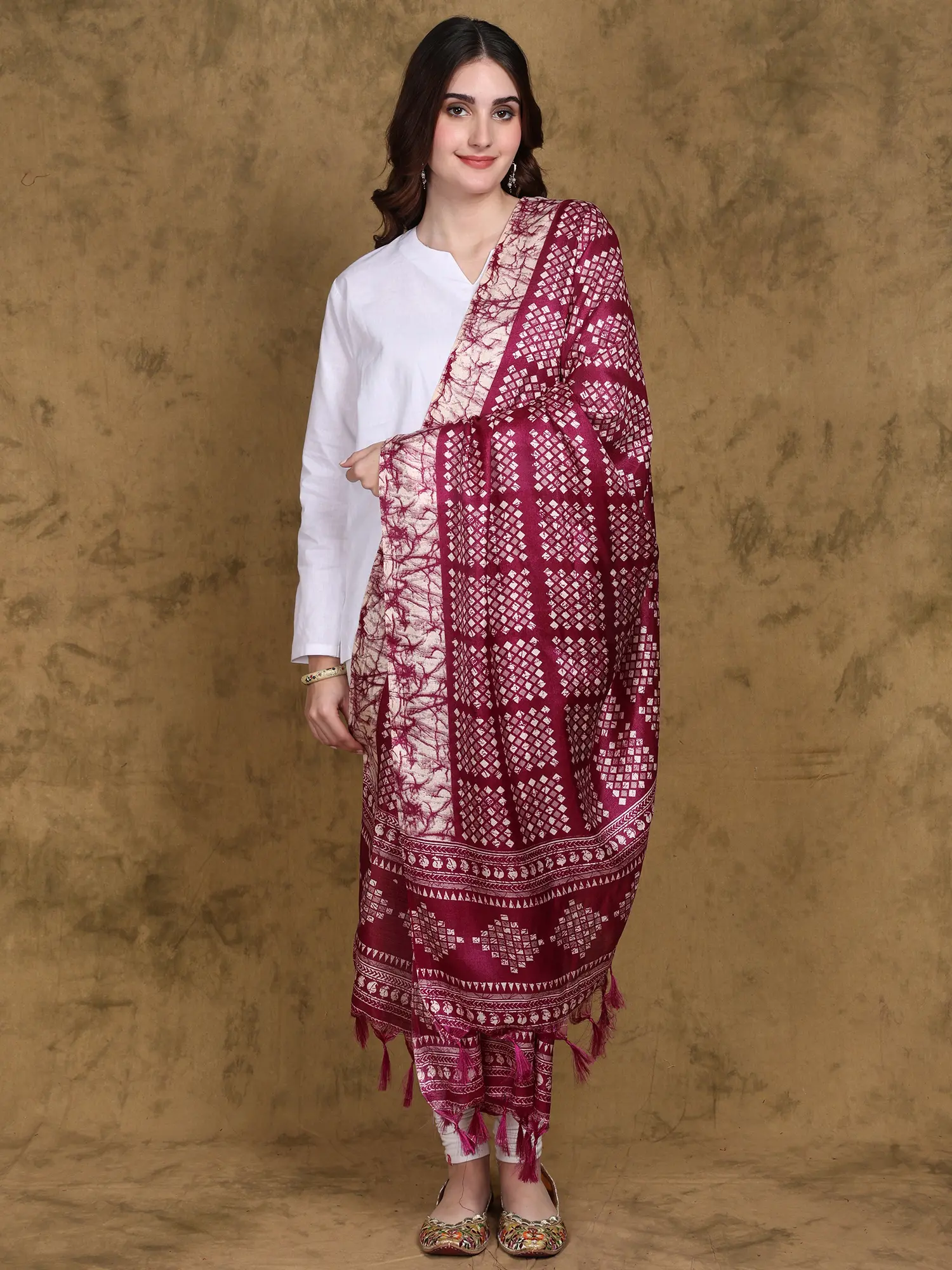 Art Silk Dupatta with Printed Folk Figures Inspired by Warli Art