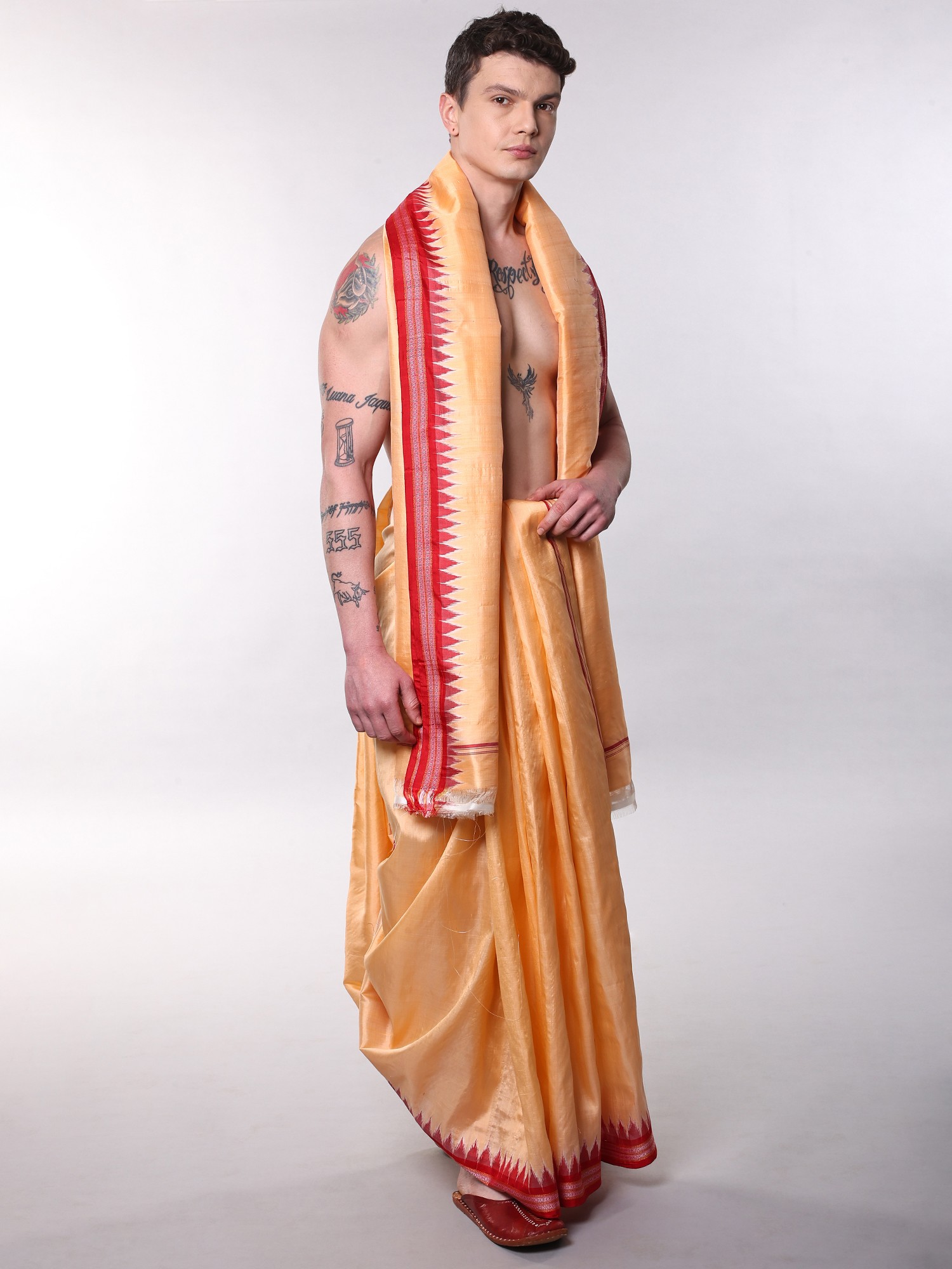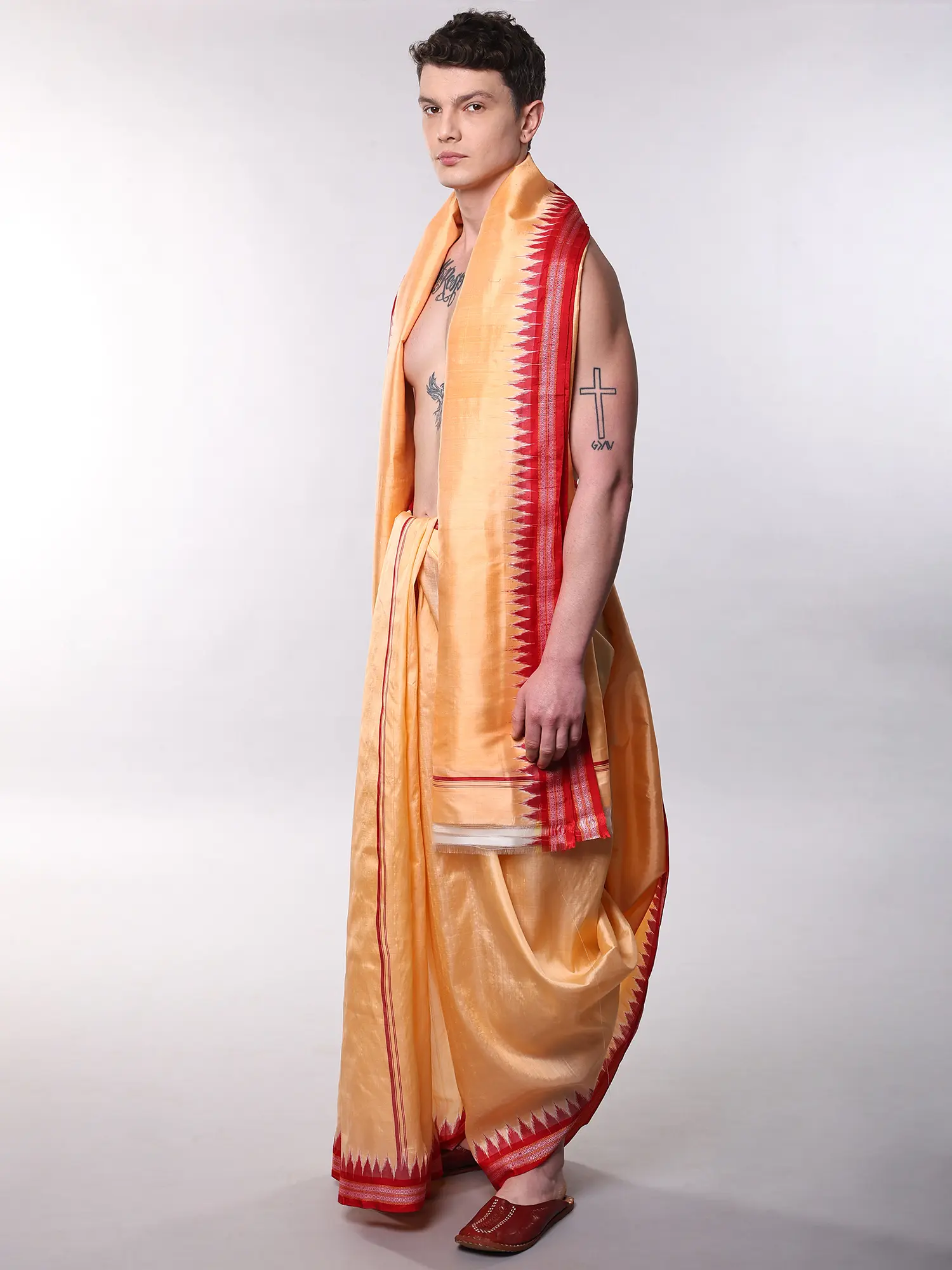 Dhoti measures 162 inches long by 47 inches wide for ample draping.