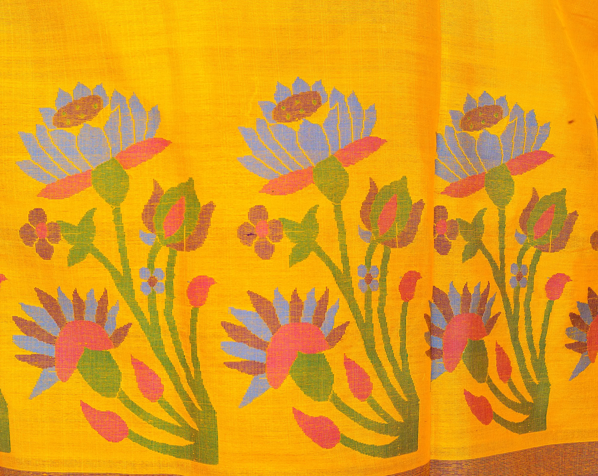 Beeswax-Yellow Banarasi Sari with Hand Woven Lotuses