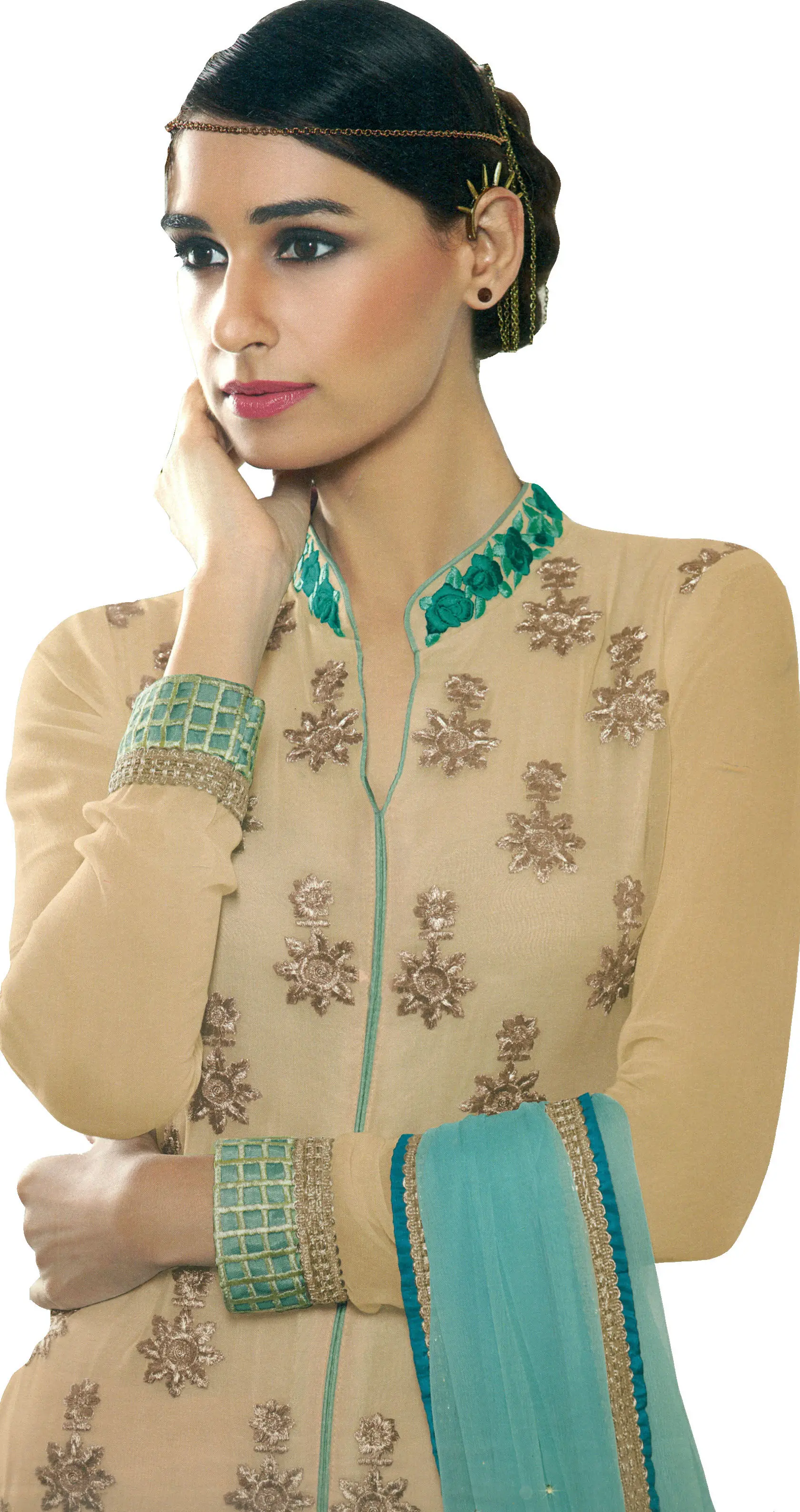Sandstone Churidar Flair Suit with Embroidered Sequins