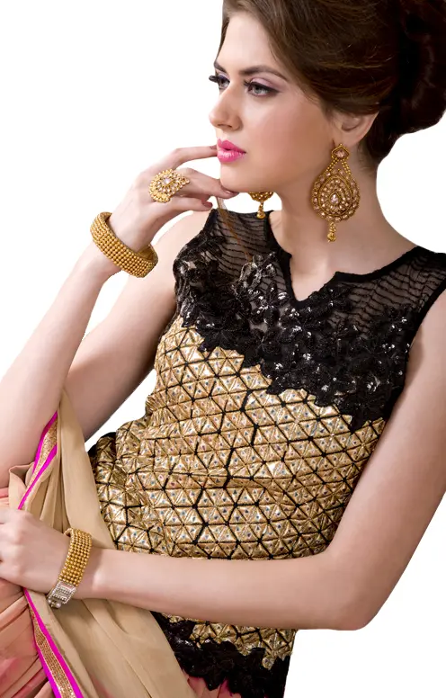 Caramel Anarkali Churidar Long Kameez Suit with Patchwork and Faux Pearls
