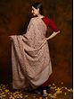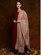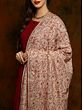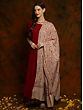 This piece of warm clothing embodies sophistication coupled with softness in a handwoven shawl of pure wool, having a beige groundwork enriched with elaborative jaal work comprising delicate flowers, leaves, and vines in vivid crimson and orange hues. This shawl is a traditional piece that carries age-old patterns and works as a tribute to the magnificent craftsmanship of Kashmir.
