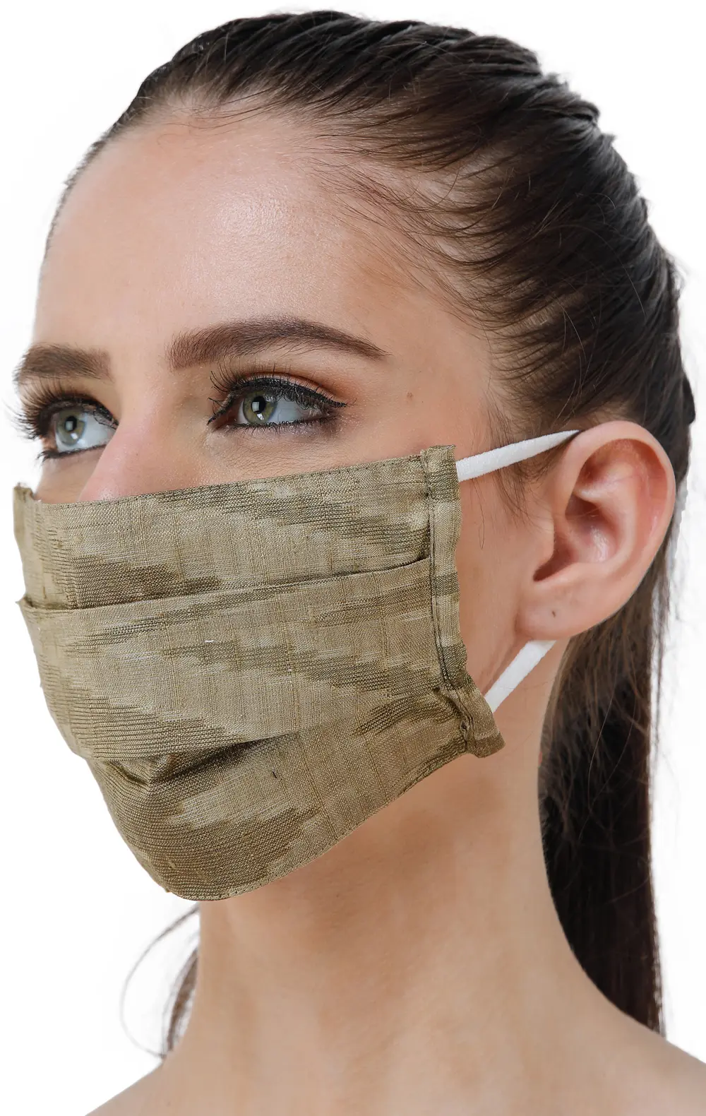 Pearled-Ivory Pure Silk Handloom Saree from Pochampally with All-Over Ikat Weave and Tissue Border
