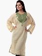 Beige Kashmiri Phiran with Hand-Embroidery on Neck