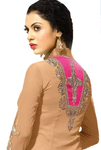 Multi-Color Churidar Kameez Suit with Embroidered Patch on Neck and Printed Flowers