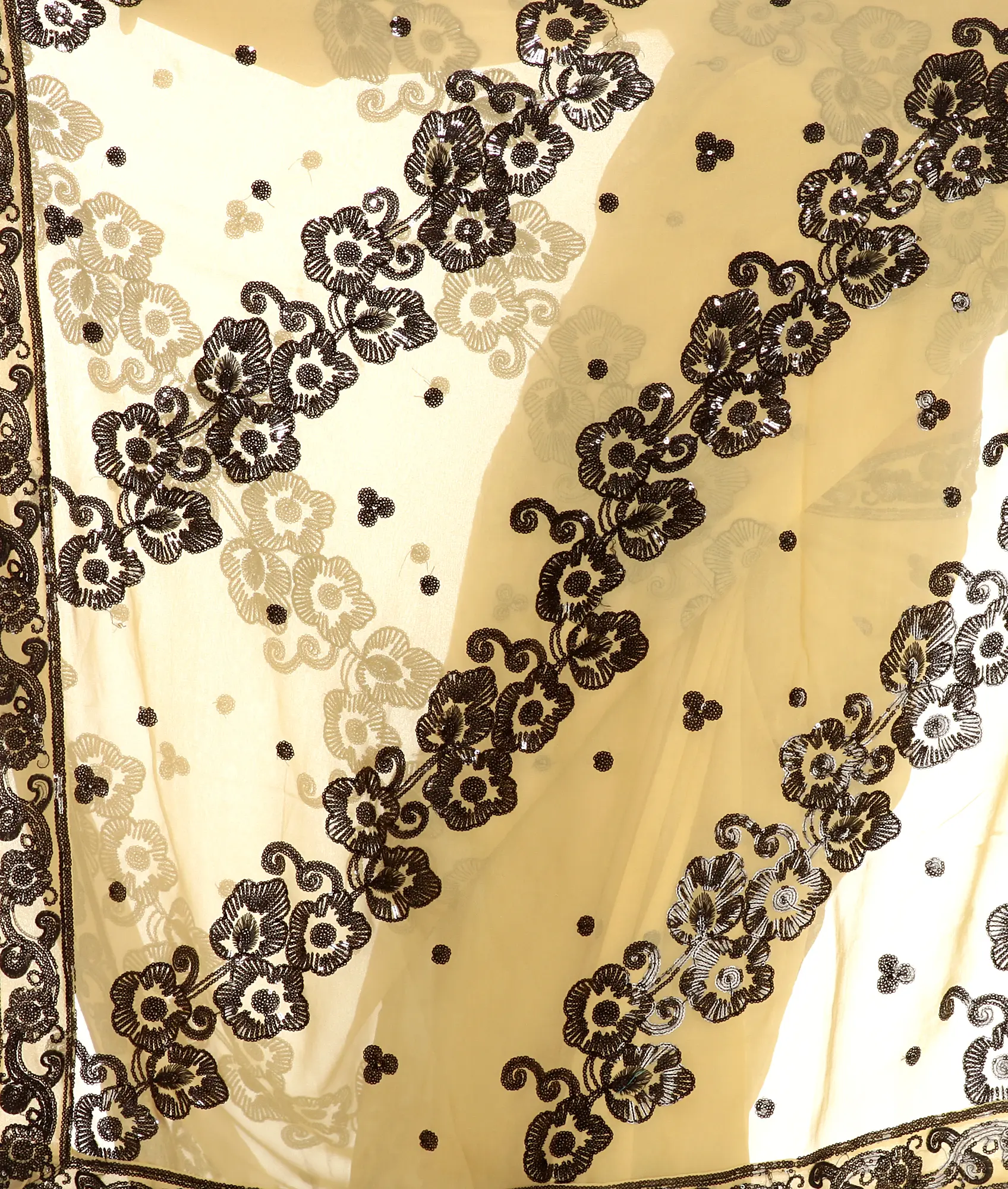 Intricate Black Floral Embroidery and Sequins