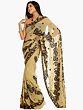 Beige Sari with Black Sequins Embroidered as Flowers