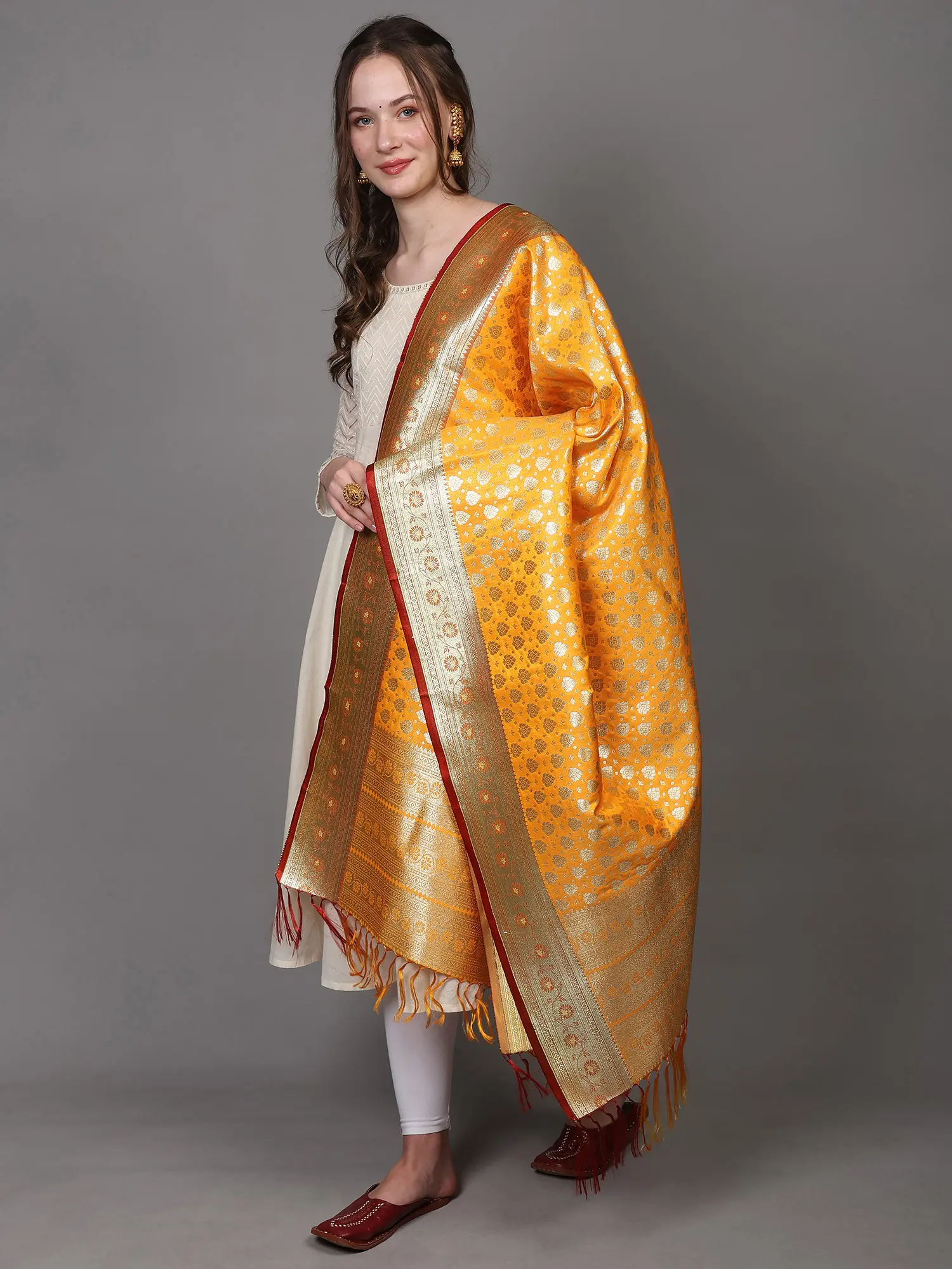 Zari Woven Art Silk Dupatta with Golden Floral Bootis and Contrast Border