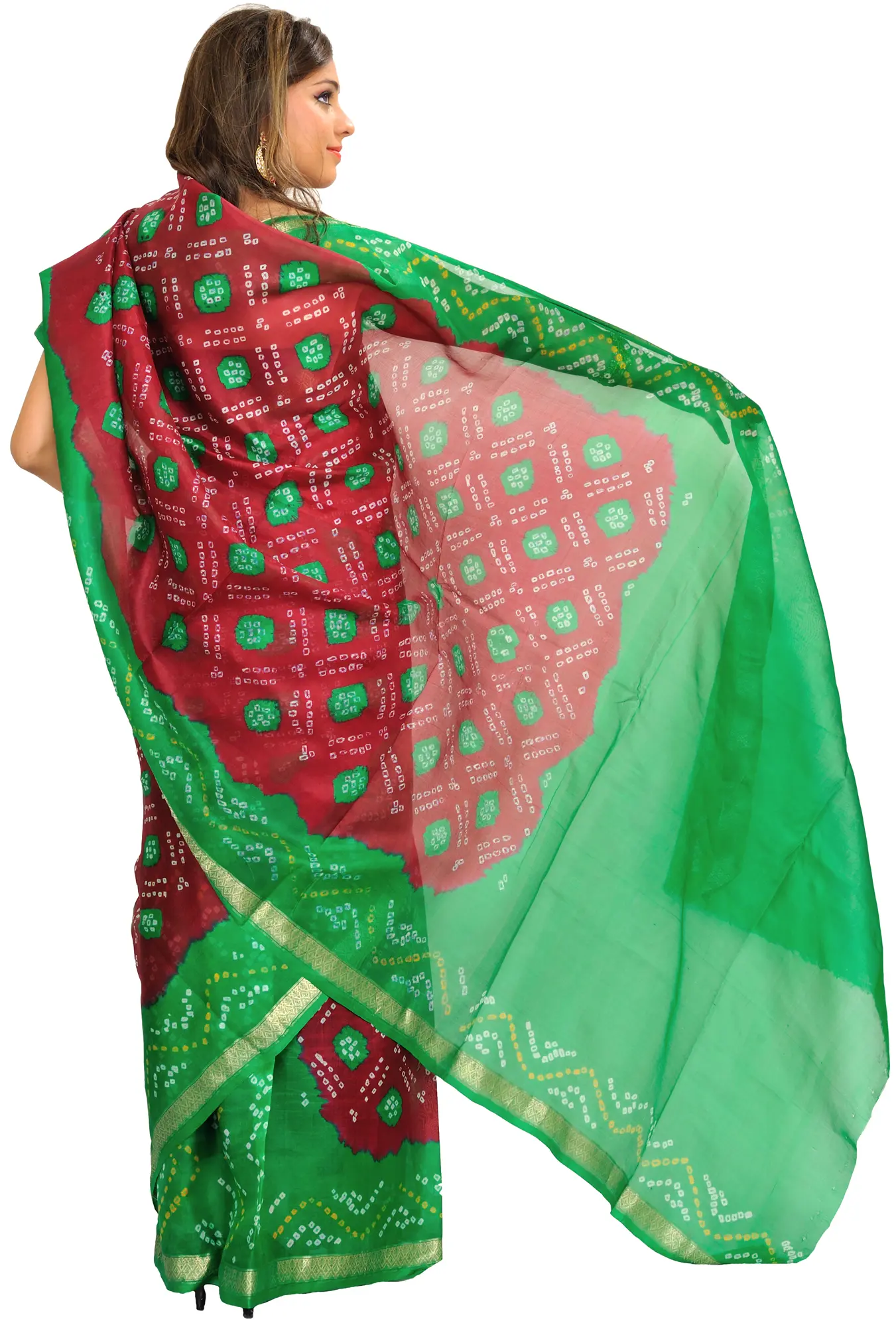 Bandhani Tie-Dye Marwari Sari from Jodhpur with Zari Embroidered Flowers