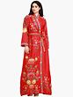 Bittersweet-Red Robe from Kashmir with Aari Hand-Embroidered Flowers
