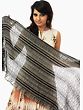 Super soft plain crinkle scarf with woven strips to create a very chic style and alluring design. It is a great way to add pure bliss to your wardrobe. Additionally, it comes in a breathable and lightweight finish that makes it more comfortable and attractive to wear. Available in black and grey colour, this scarf will provide you with the best possible results every time you wear it. The lightweight fabric used in it will not only add a rich texture but also gives a wonderfully soft feel. The fabric is breathable so you can rest assured that you will get extra comfort with its feature-like touch and elegant design. The black colour of the scarf makes it look decent with your every attire and dress. So it's time to get your hands on the perfectly designed black and grey crinkled scarf with woven stripes to enhance your overall look.