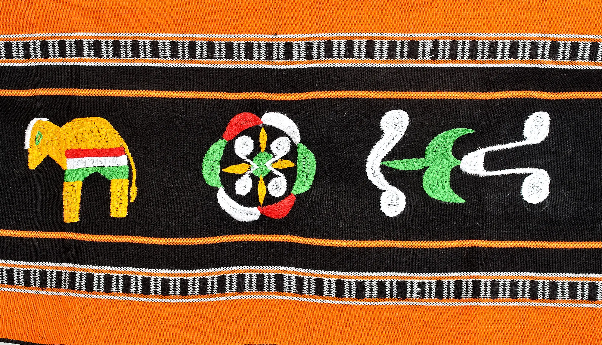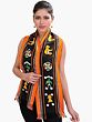 Black and Orange Scarf from Nagaland with Embroidered Auspicious Motifs