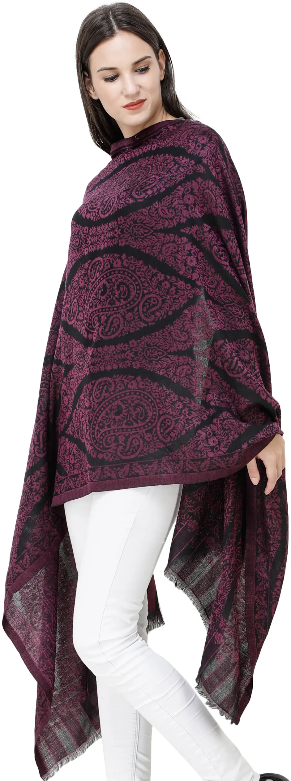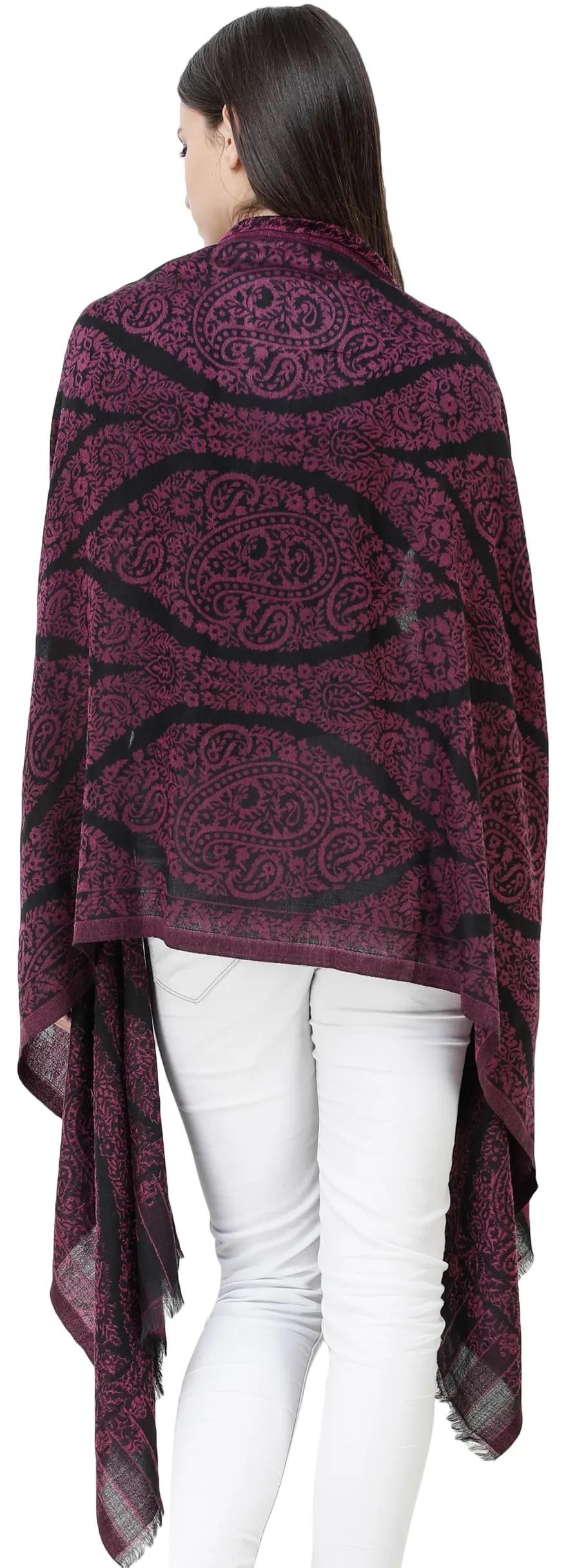 Discover a piece of traditional artistry with this exquisite Jamawar shawl, meticulously crafted in the renowned weaving hub of Amritsar. This shawl is a testament to the enduring legacy of Indian textile craftsmanship, brought to life through the intricate Jamawar weaving technique. The rich tapestry of black and deep pink hues creates a visually captivating ensemble, making it a statement accessory for any occasion.