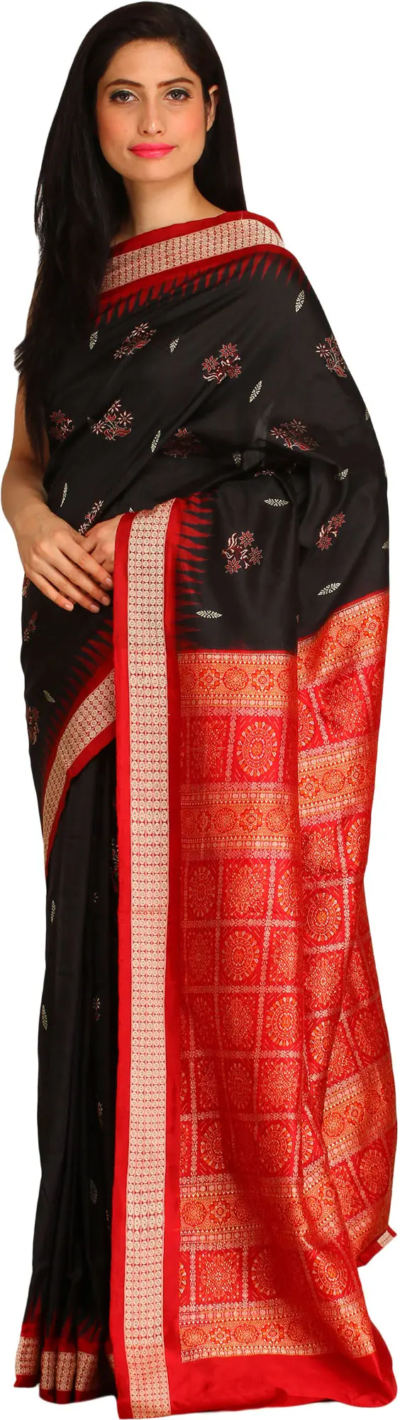 Aurora-Red Dola Silk Saree with Printed Bootis and Zari Woven Floral Vine Border