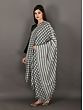 Off-White and Black Bedspread from Gujarat with Block-Printed Florals